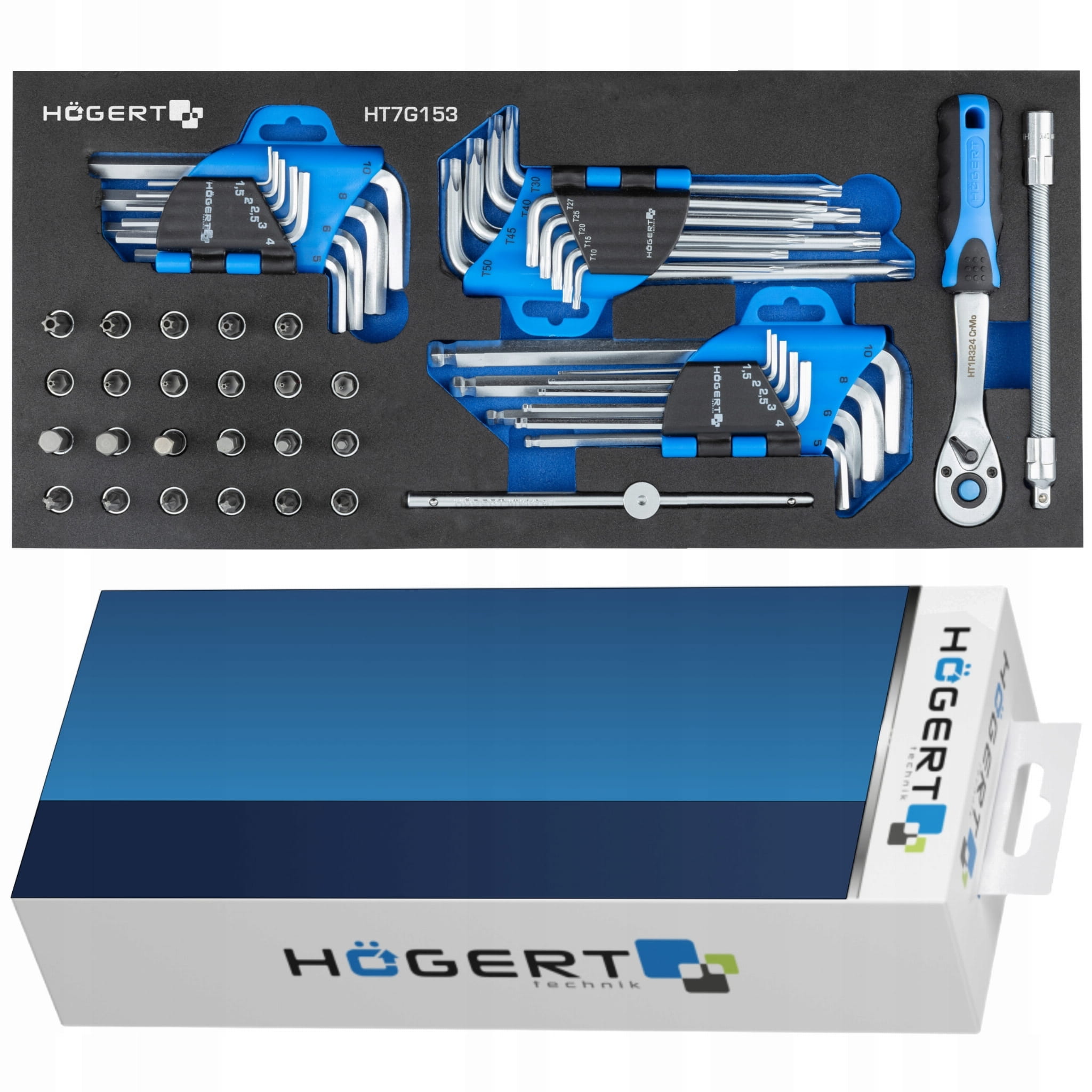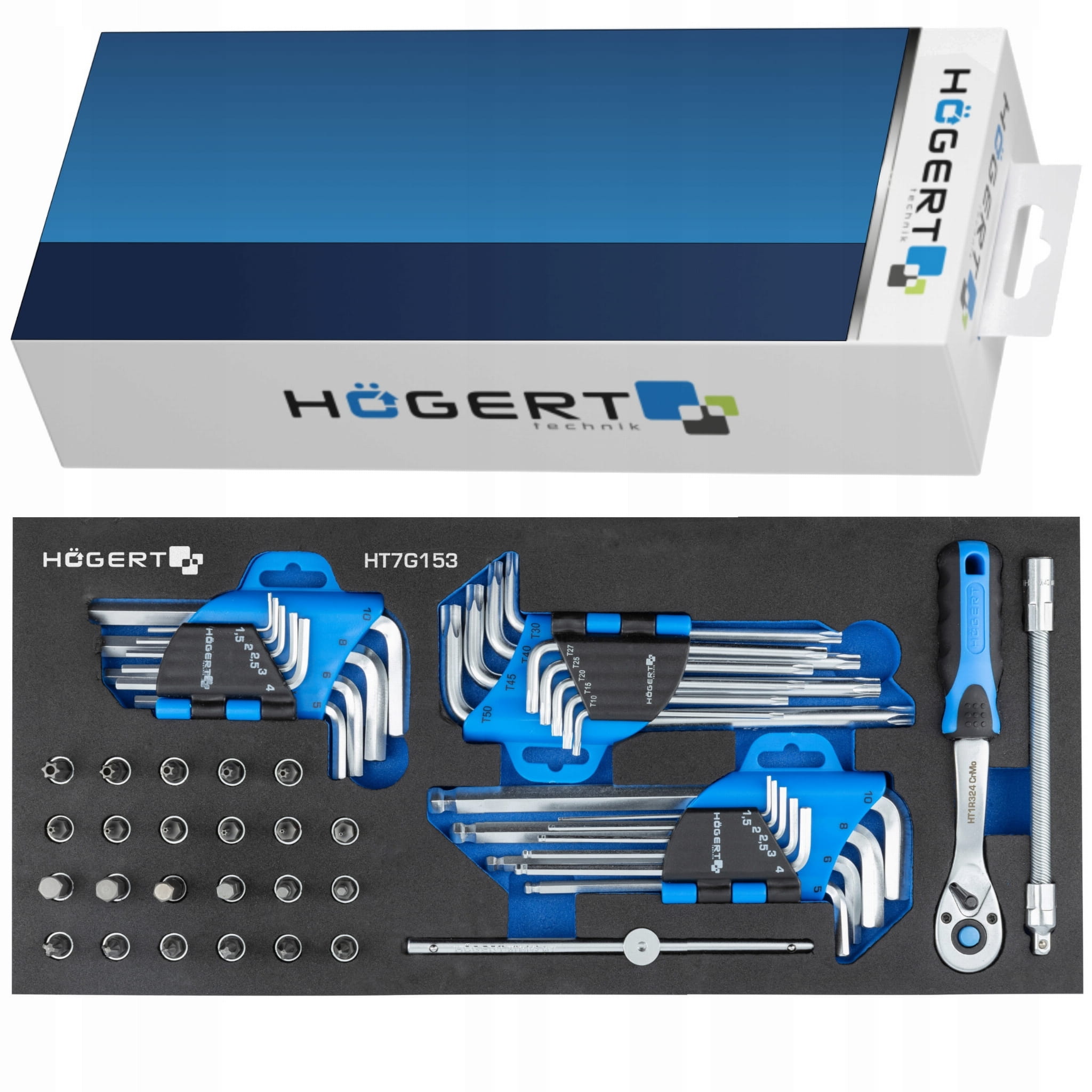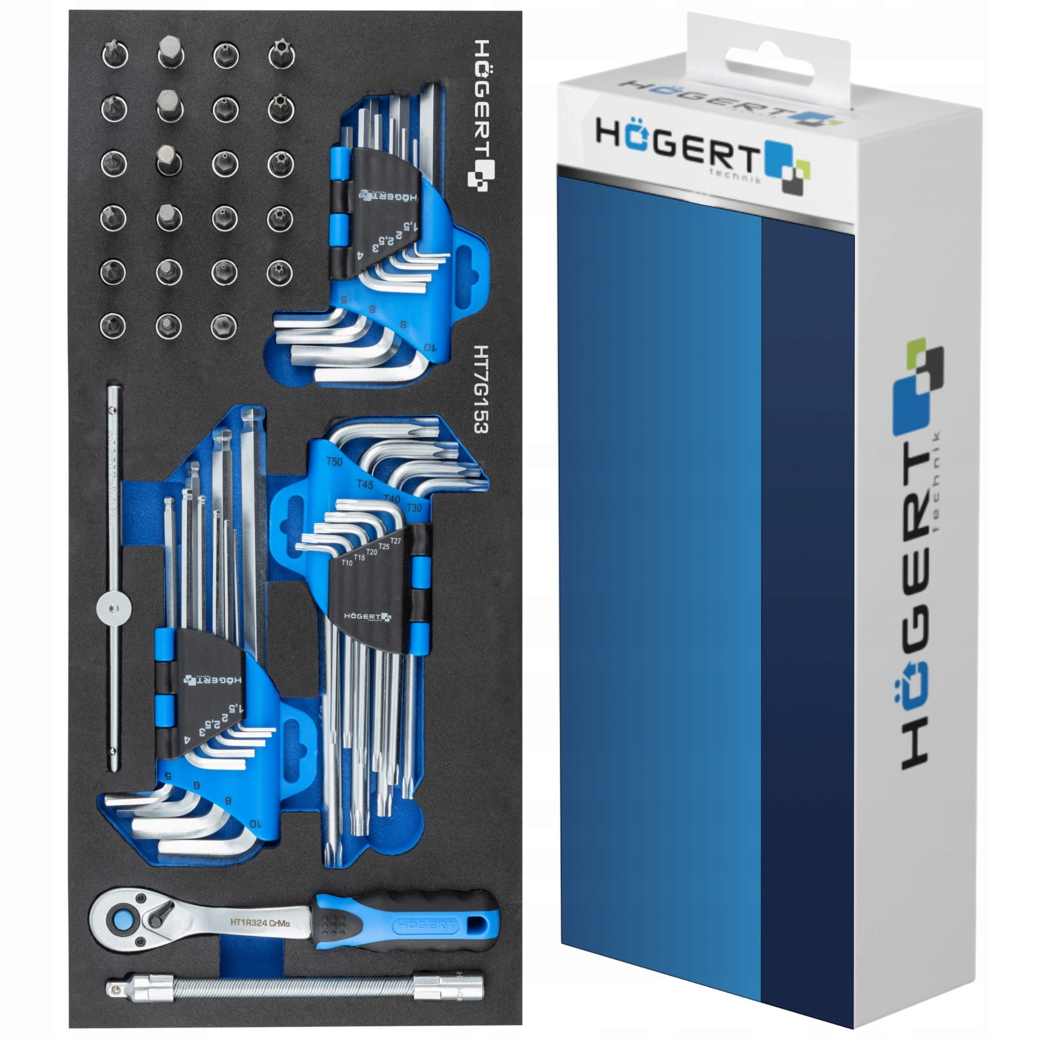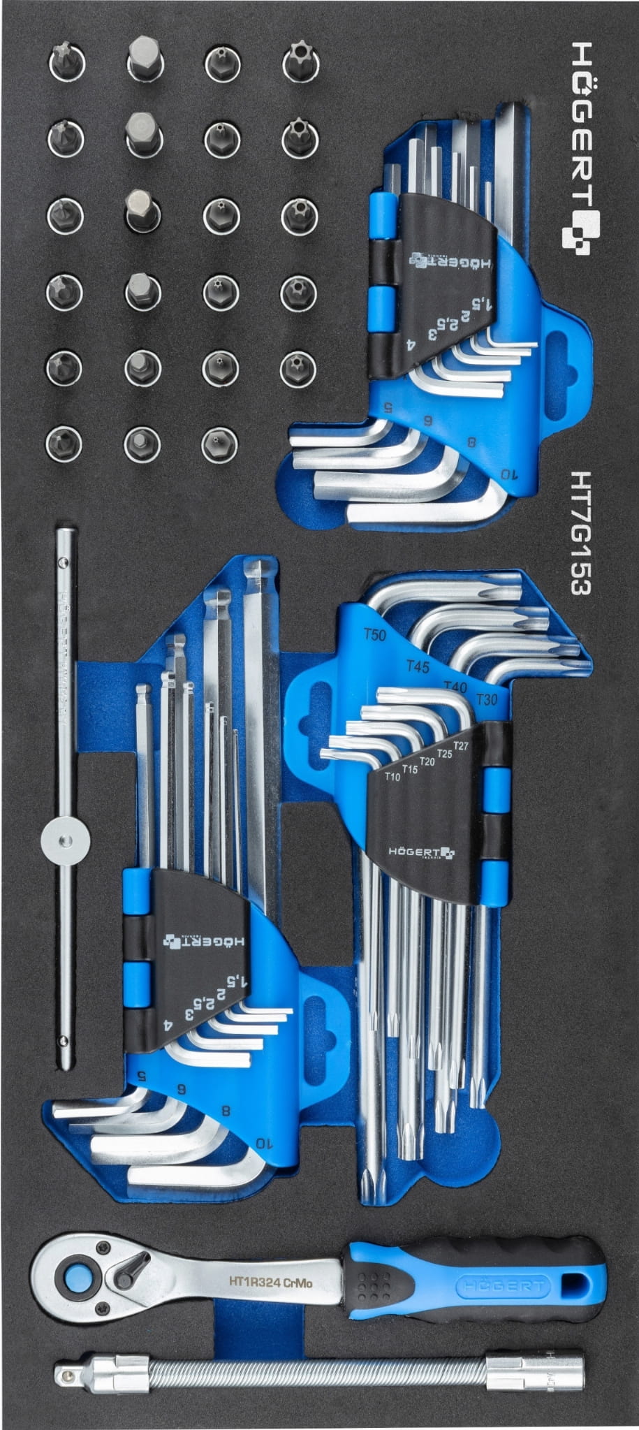 HOGERT WKŁAD SZAFKI NARZĘDZIOWEJ ZESTAW KLUCZE IMBUSOWE BITY 53SZT. HT7G153