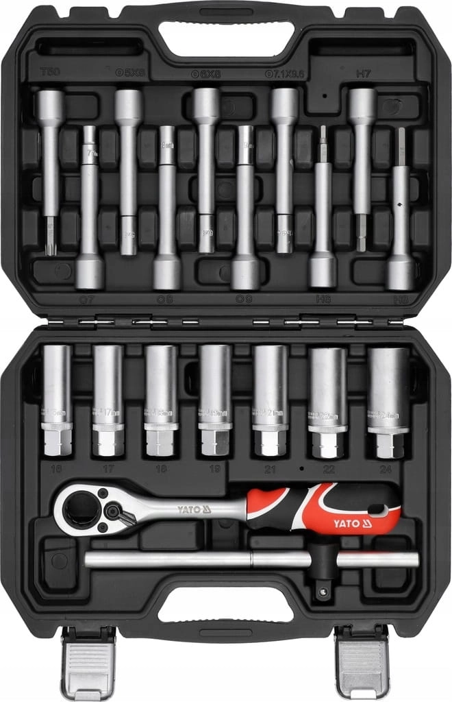 Specjalistyczny zestaw kluczy YATO z grzechotką przelotową do mocowania i naprawy amortyzatorów.