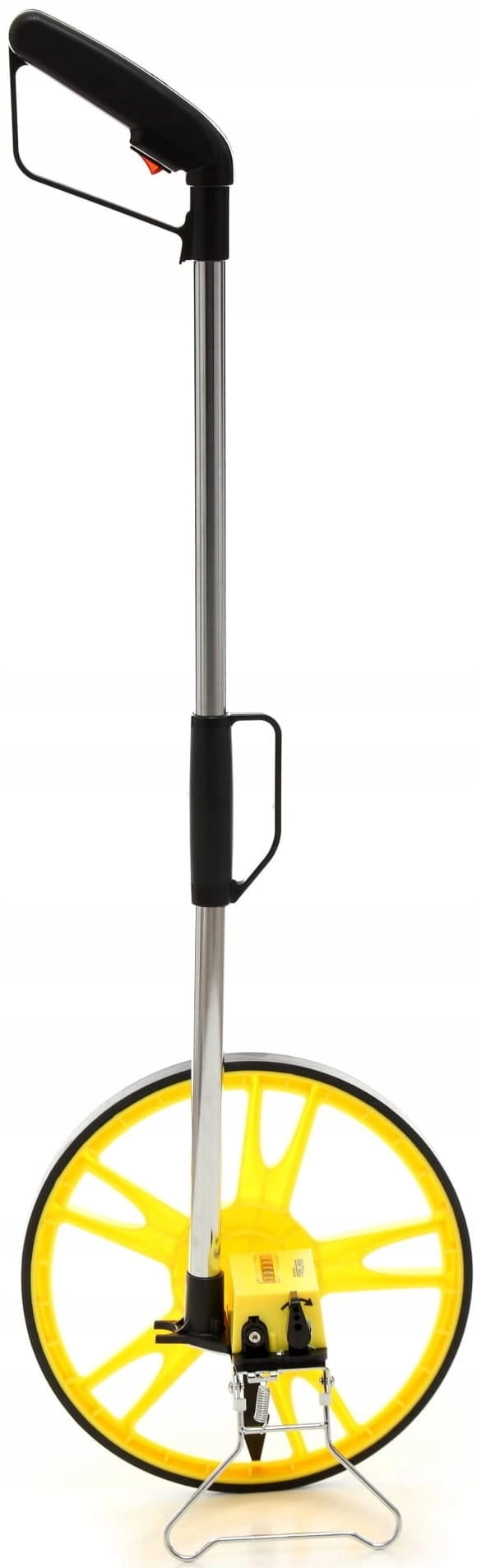✔️Pomiar dokonywany jest poprzez toczenie kółka po równej nawierzchni, które obracając się uruchamia licznik.