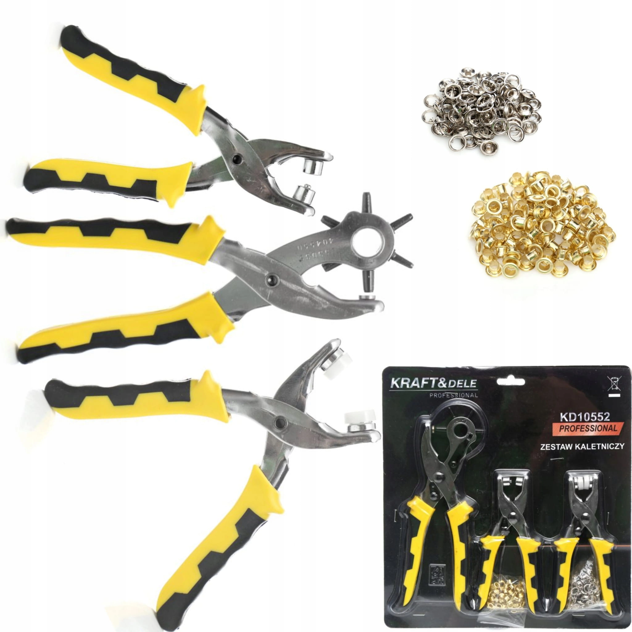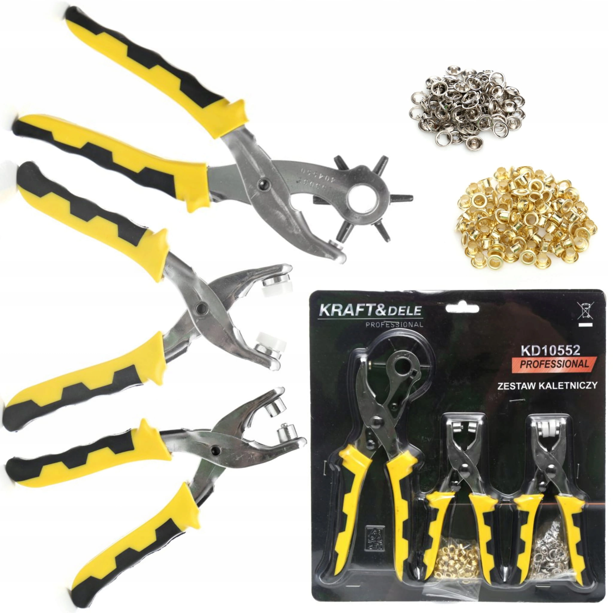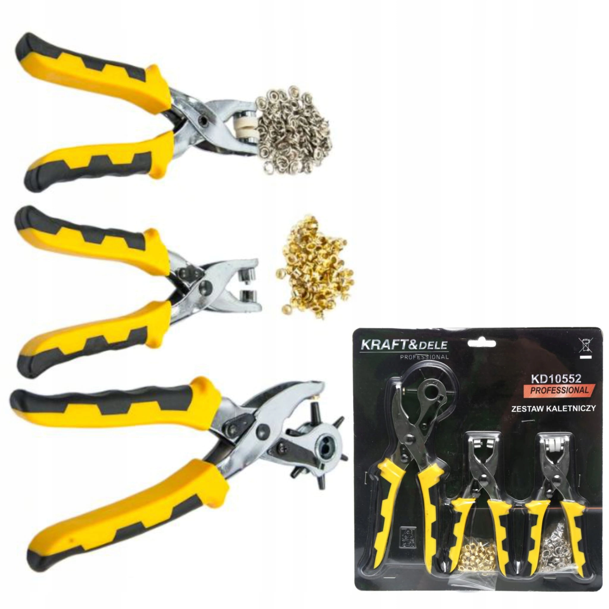 Zestaw kaletniczy o symbolu KD 10552 marki Kraft&Dele idealnie nadaje się do robienia dziurek, montowania oczek lub zatrzasków.