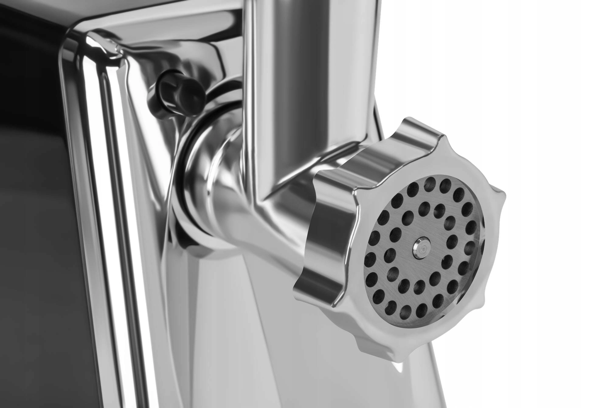 Maszynka została wyposażona w aż dwa noże tnące – tradycyjny pojedynczy oraz podwójny, który zapewnia szybsze i bardziej równomierne mielenie, szczególnie przy twardszych kawałkach mięsa. Trzy metalowe dyski o średnicy 54 mm (3 mm, 5 mm, 7 mm) umożliwiają dopasowanie stopnia rozdrobnienia do konkretnego dania.