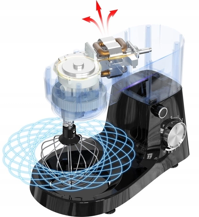 Moc nominalna 1500W (Peak 2500W) ? Gwarantuje wysoki moment obrotowy, niezbędny do wyrabiania ciężkich ciast drożdżowych czy chlebowych.