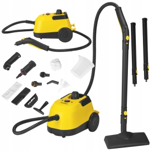 Kompaktowa konstrukcja, wygodny uchwyt transportowy oraz kółka ułatwiają przemieszczanie urządzenia i komfort pracy. Myjka wyposażona jest w elastyczny przewód oraz bogaty zestaw akcesoriów, który pozwala na czyszczenie wielu powierzchni – od podłóg i fug, przez okna i kabiny prysznicowe, aż po tapicerki i trudno dostępne miejsca. Dzięki zabezpieczeniom bojlera oraz zaworowi bezpieczeństwa użytkowanie urządzenia jest bezpieczne i wygodne, a szybkie nagrzewanie pozwala niemal natychmiast rozpocząć pracę.