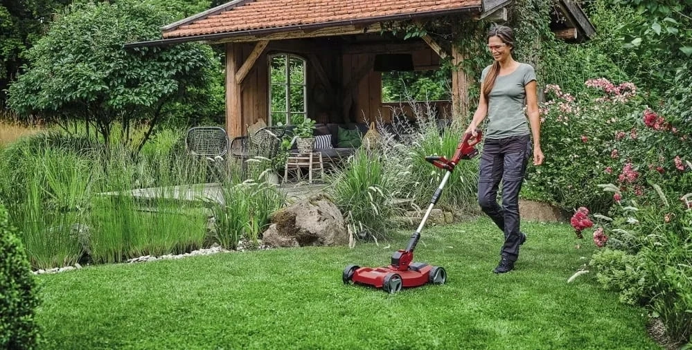 Zawarty w zestawie „wózek do podkaszarki” oferuje możliwość przekształcenia podkaszarki ręcznej w poręczną kosiarkę miejską z 2-stopniową osiową regulacją wysokości cięcia w zakresie od 35 mm do 55 mm. Wózek posiada system zatrzaskowy umożliwiający łatwą i beznarzędziową zmianę z podkaszarki ręcznej na kosiarkę miejską. W zakres dostawy wchodzi szpulka z żyłką (5 m) z całkowicie automatycznym podawaniem.