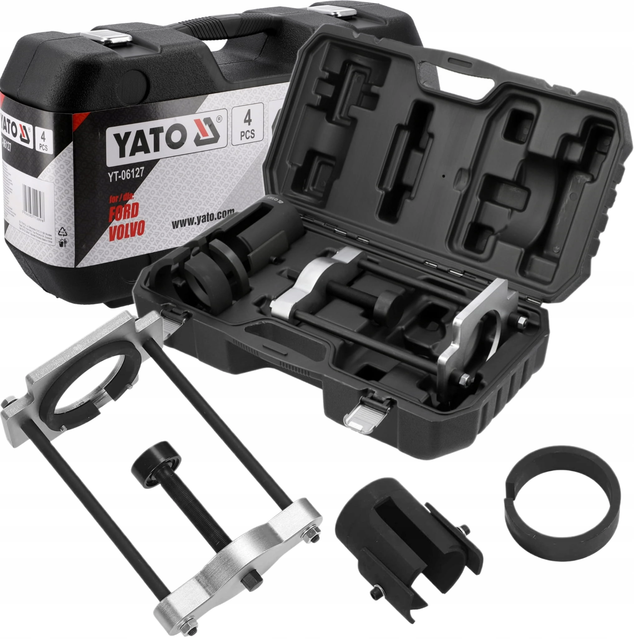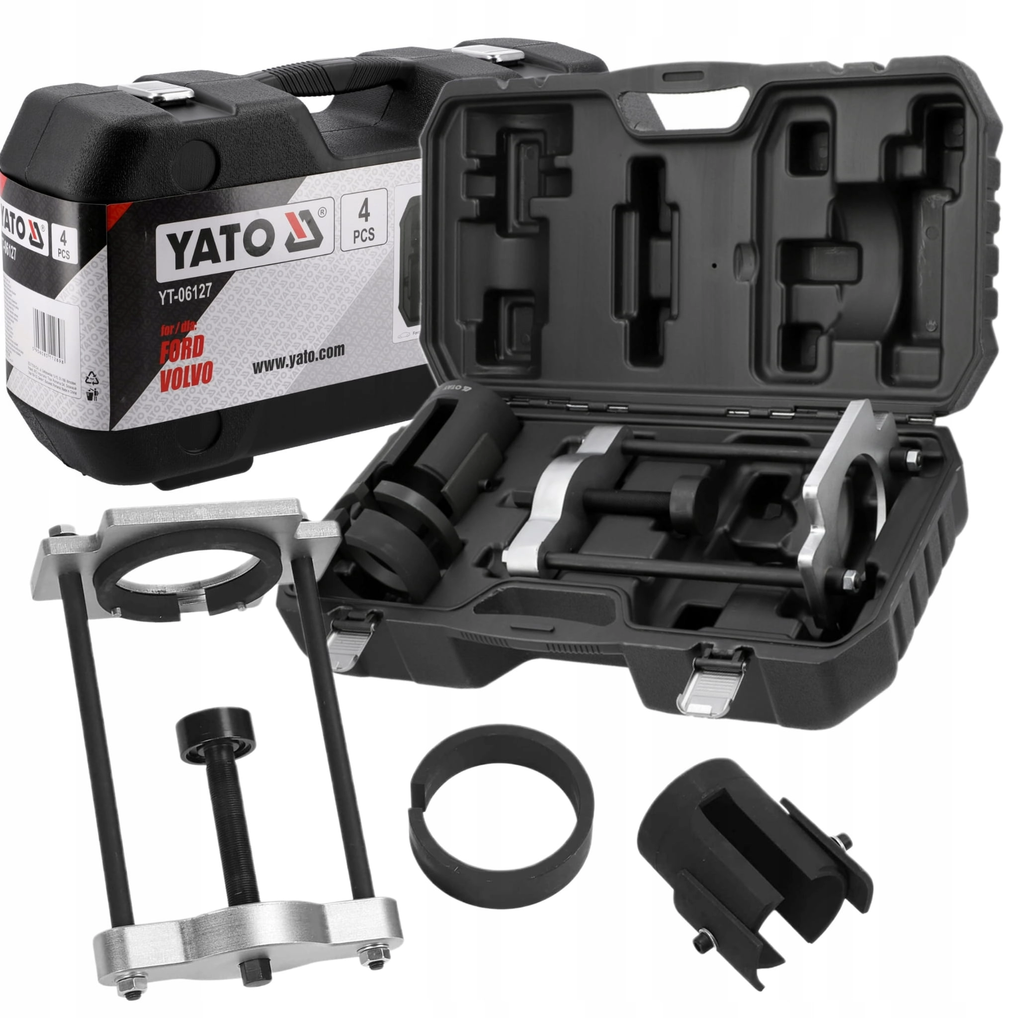Ściągacz tulei wahacza YATO w samochodach marki Ford i Volvo.