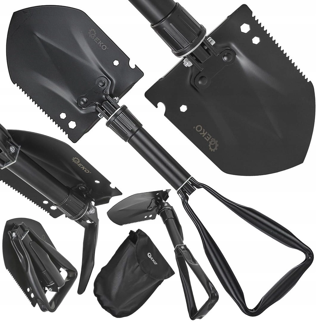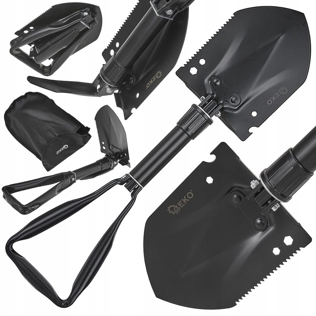 - Funkcje: Łopata, piła, otwieracz do butelek, klucz sześciokątny (3 rozmiary), kilof/motyka