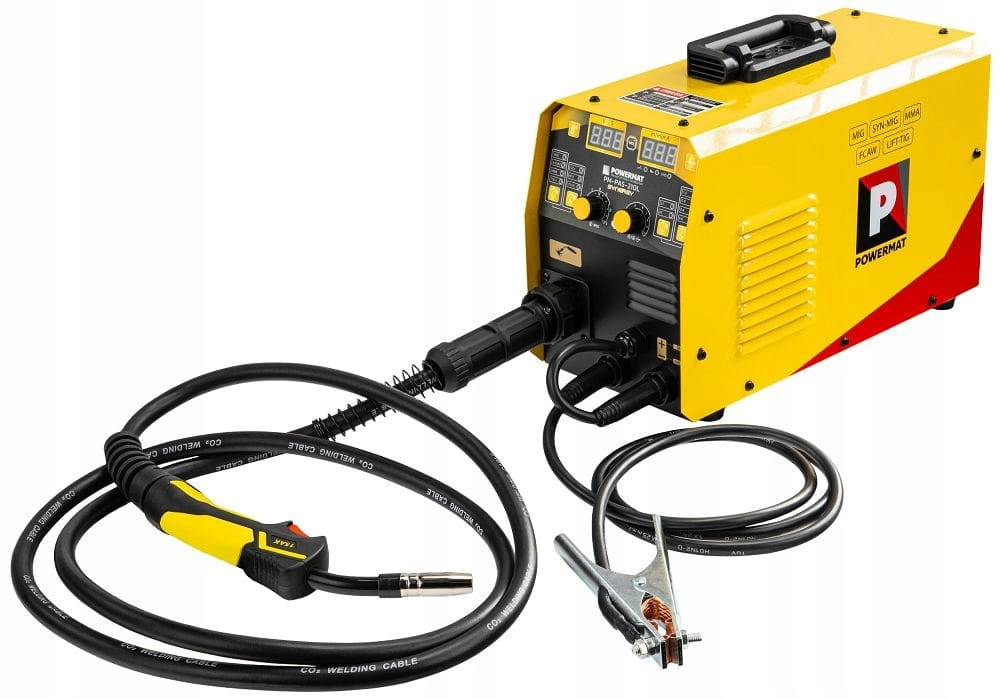 Spawarka obsługuje MIG/MAG, MMA, TIG LIFT oraz FLUX. Dzięki temu jednym urządzeniem wykonasz różne prace spawalnicze.