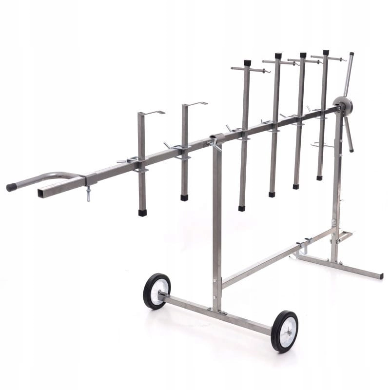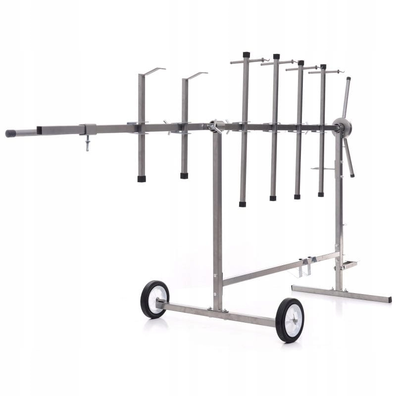 KD349 to wytrzymały i stabilny stojak lakierniczy, który ułatwia prace malarskie w warsztatach i zakładach przemysłowych. Dzięki solidnej konstrukcji i dużym kołom, stojak zapewnia mobilność oraz bezpieczeństwo użytkowania nawet przy większych elementach.