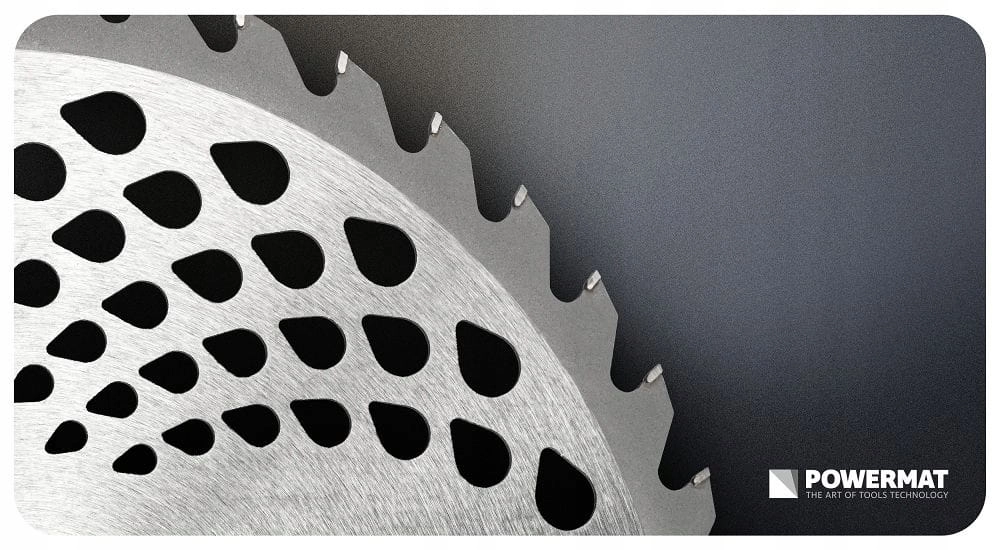 - Z JAKIEGO MATERIAŁU WYKONANO OSTRZA? Tarcza ma zęby z węglika spiekanego, określanego jako widia.