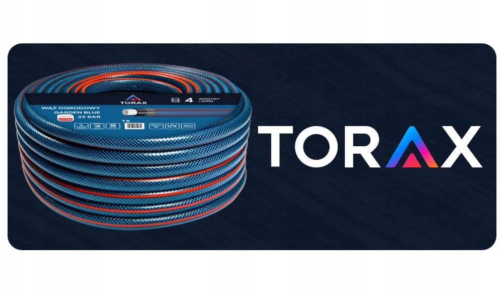 WĄŻ OGRODOWY 4-WARSTWOWY 22 BAR 1/2" 30M WZMOCNIONY DO WODY POLSKI +ZŁĄCZKI