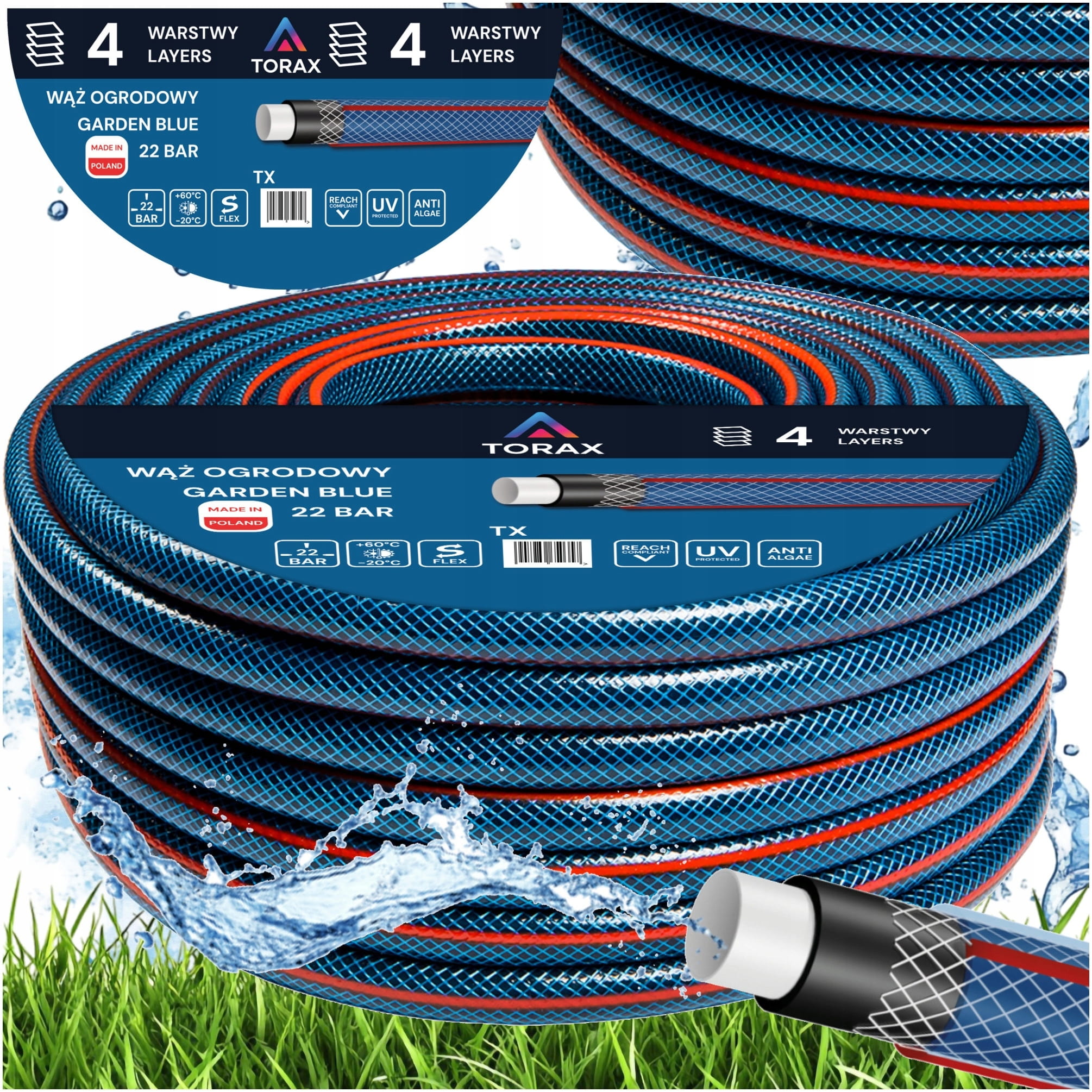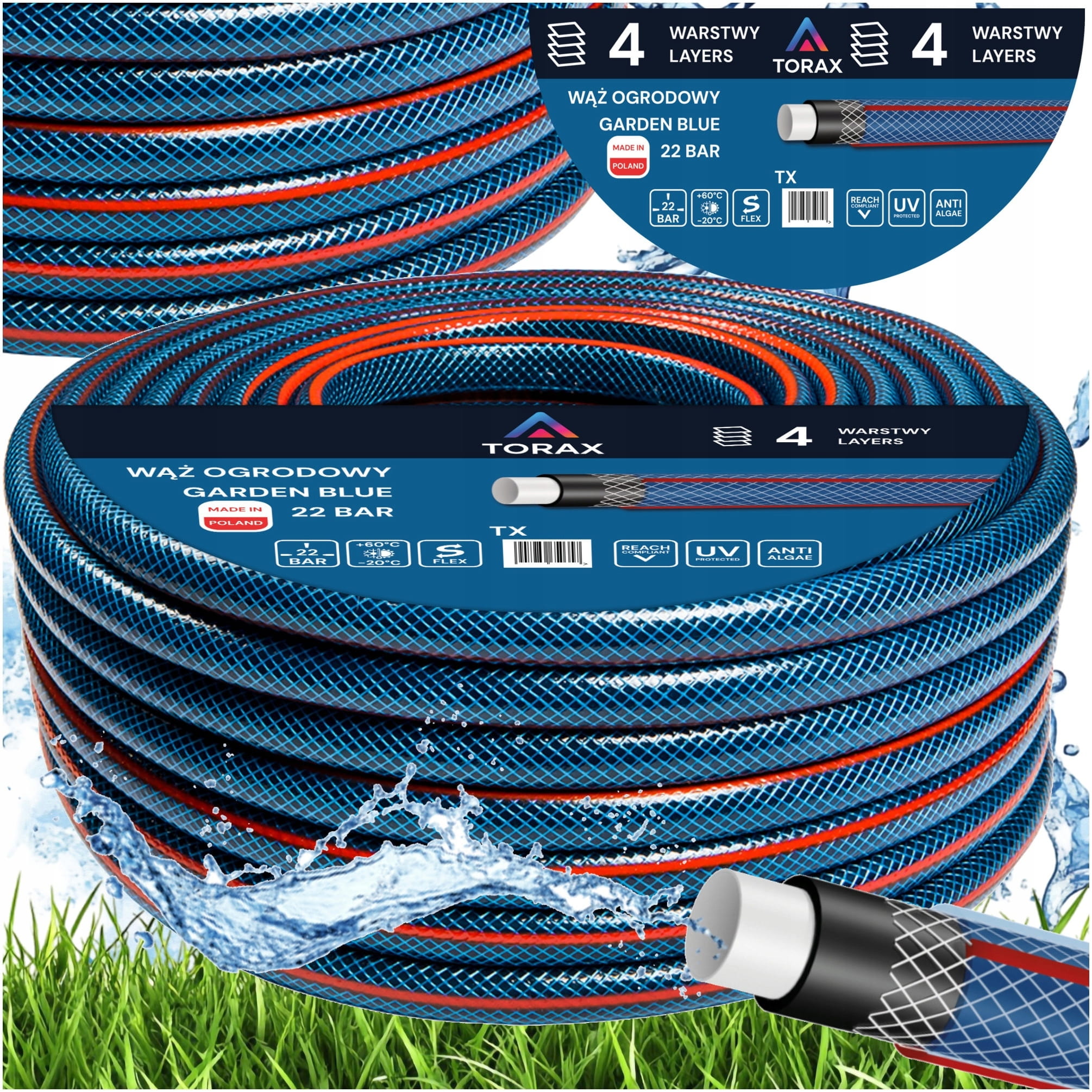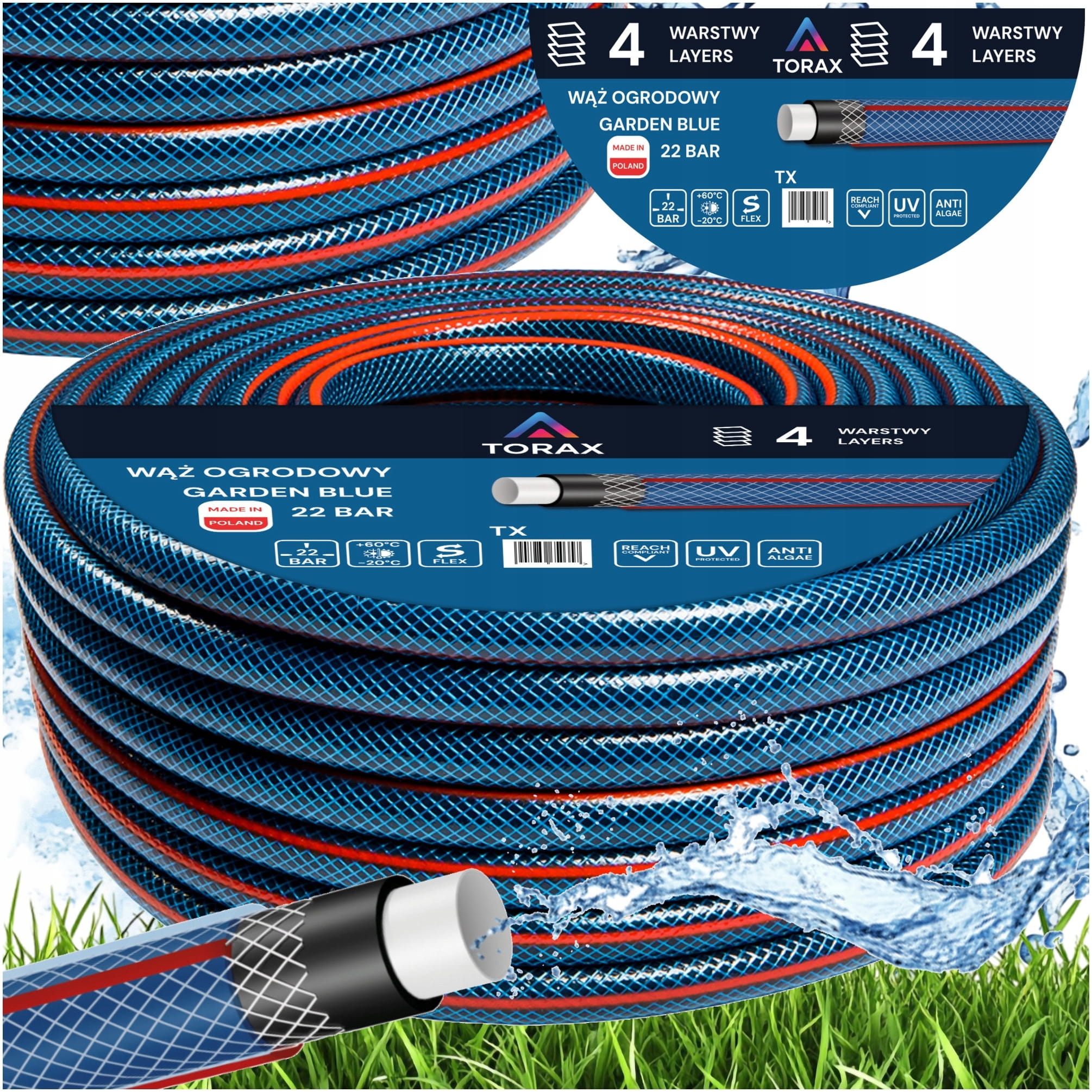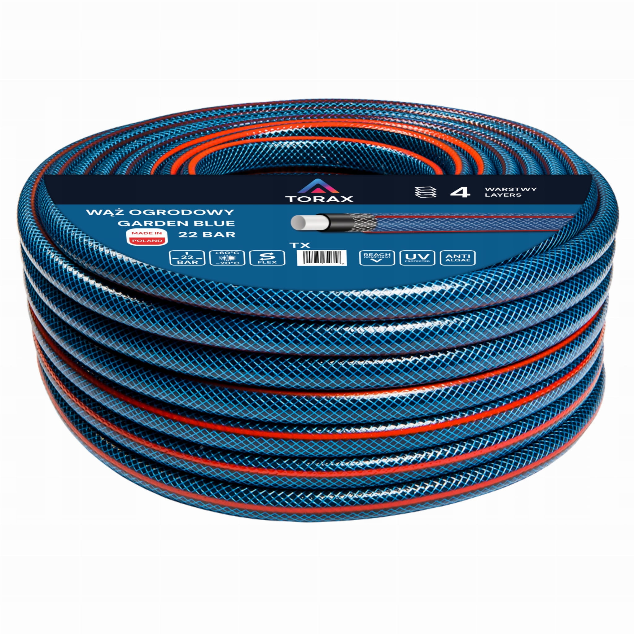 WĄŻ OGRODOWY 4-WARSTWOWY 22 BAR 3/4" 50M WZMOCNIONY DO WODY PRODUKT POLSKI