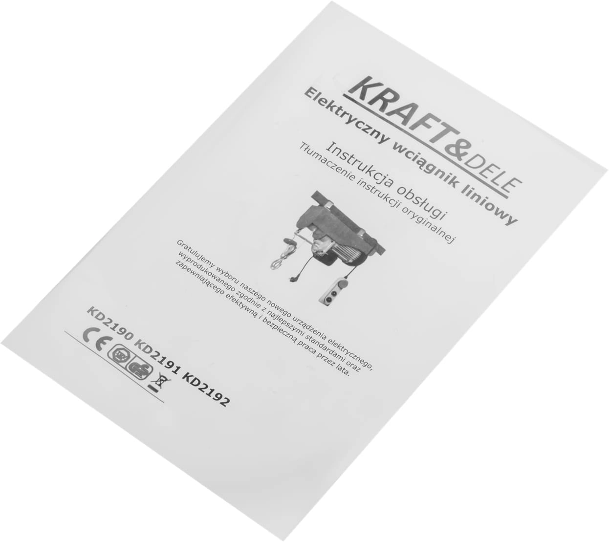 KD2191 to mocna i wydajna wyciągarka elektryczna marki KRAFT&DELE, przeznaczona do podnoszenia i opuszczania ciężkich ładunków w warunkach warsztatowych, budowlanych oraz magazynowych. Dzięki dużej mocy silnika oraz solidnej konstrukcji urządzenie sprawdzi się zarówno w zastosowaniach profesjonalnych, jak i prywatnych.