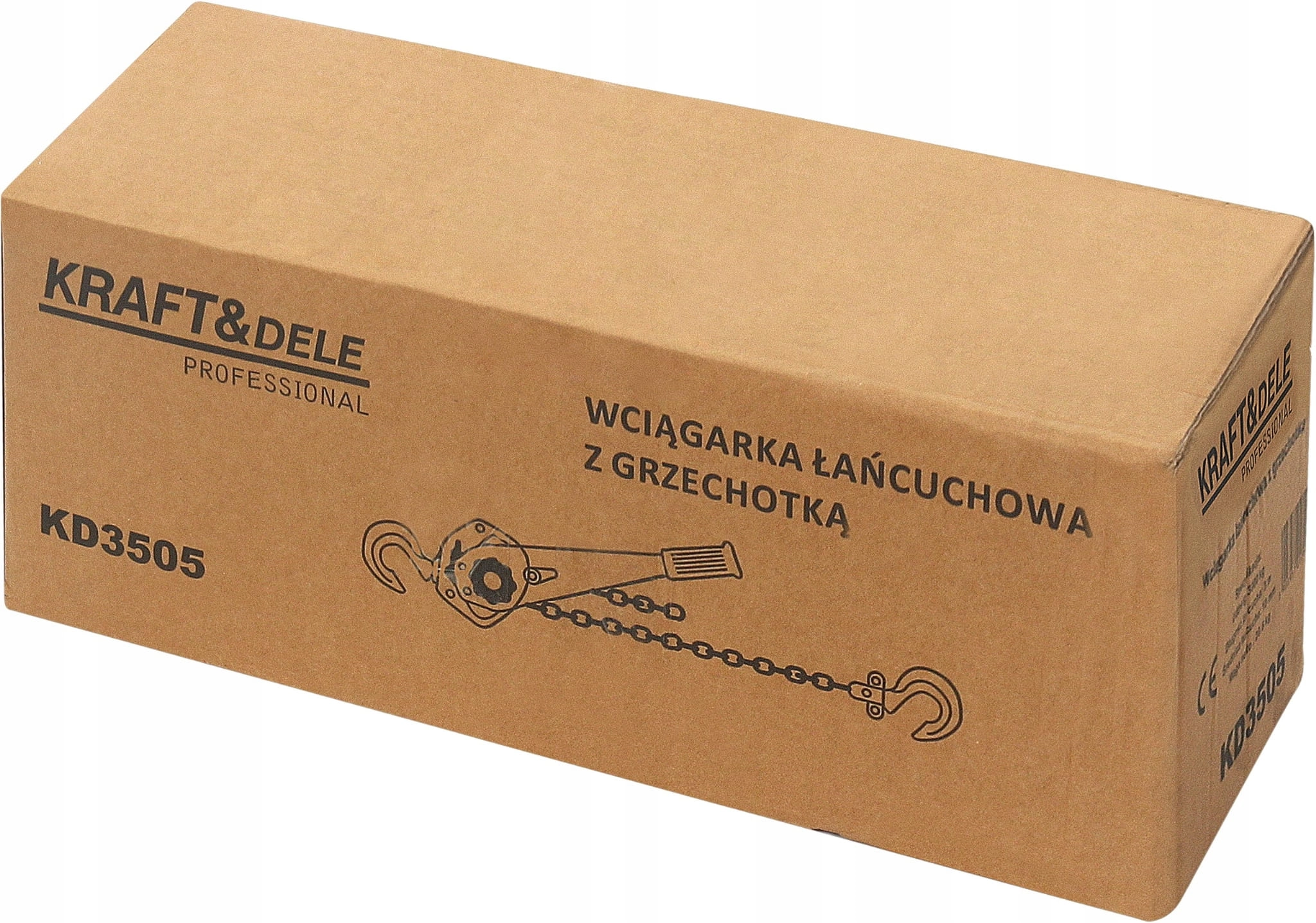 Model KD3505 został wyposażony w mocny stalowy łańcuch oraz wydajny mechanizm ręczny, który umożliwia precyzyjne i bezpieczne operowanie ładunkiem. Zwarta konstrukcja oraz solidna obudowa zapewniają wysoką odporność na uszkodzenia mechaniczne i intensywną eksploatację. Ergonomiczna dźwignia z antypoślizgowym uchwytem pozwala na komfortową pracę, a masywne haki z zabezpieczeniami zwiększają bezpieczeństwo użytkowania.