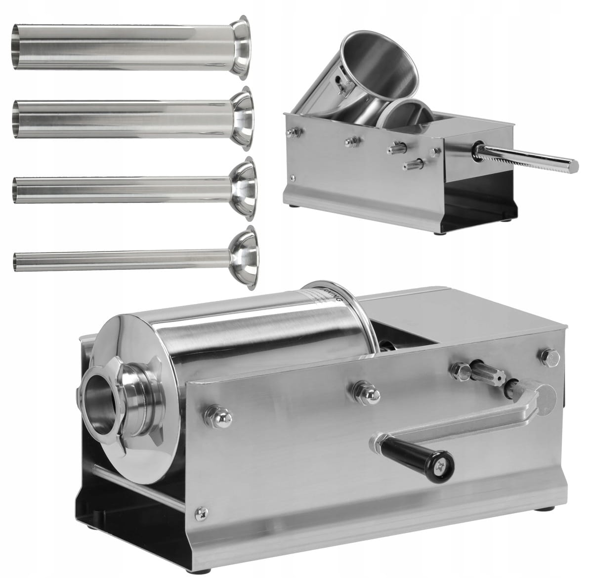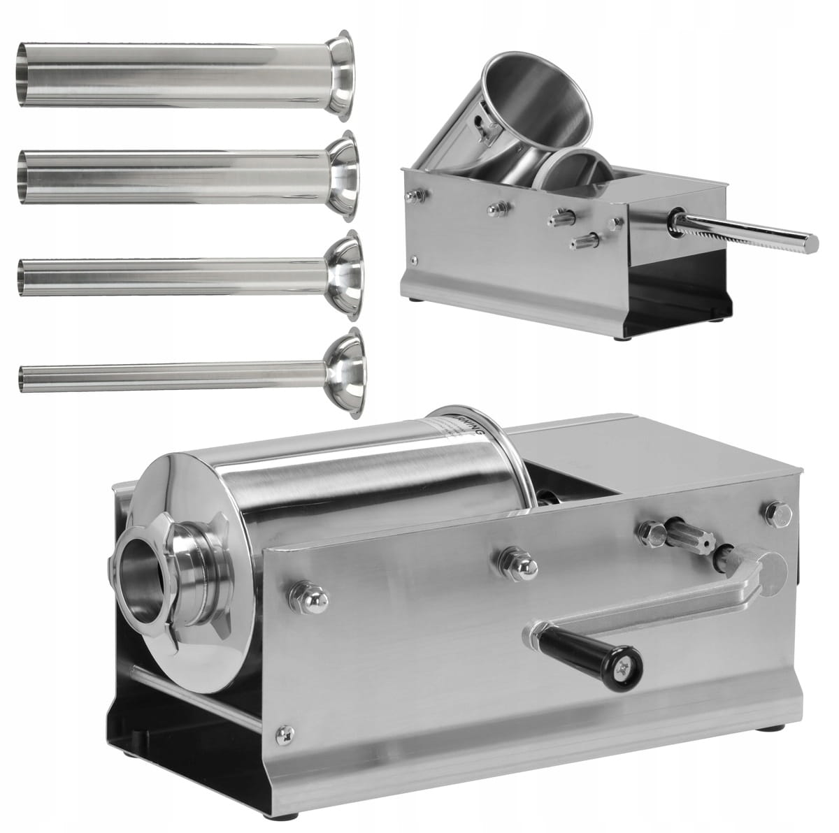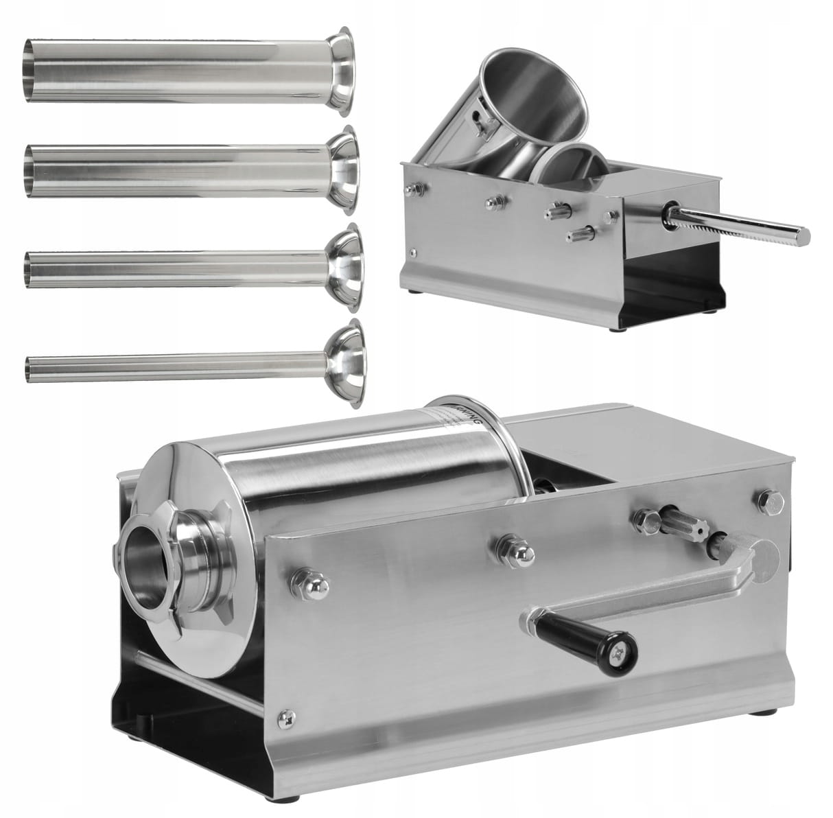 - Zawartość zestawu: nadziewarka do kiełbas, dysza x4