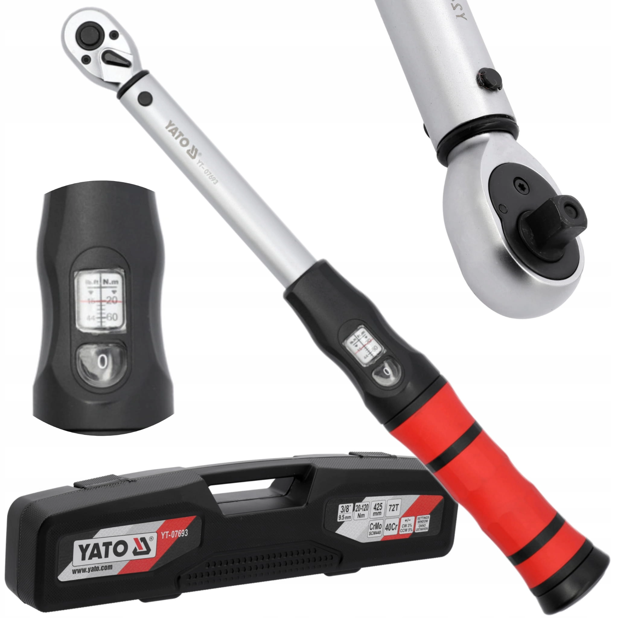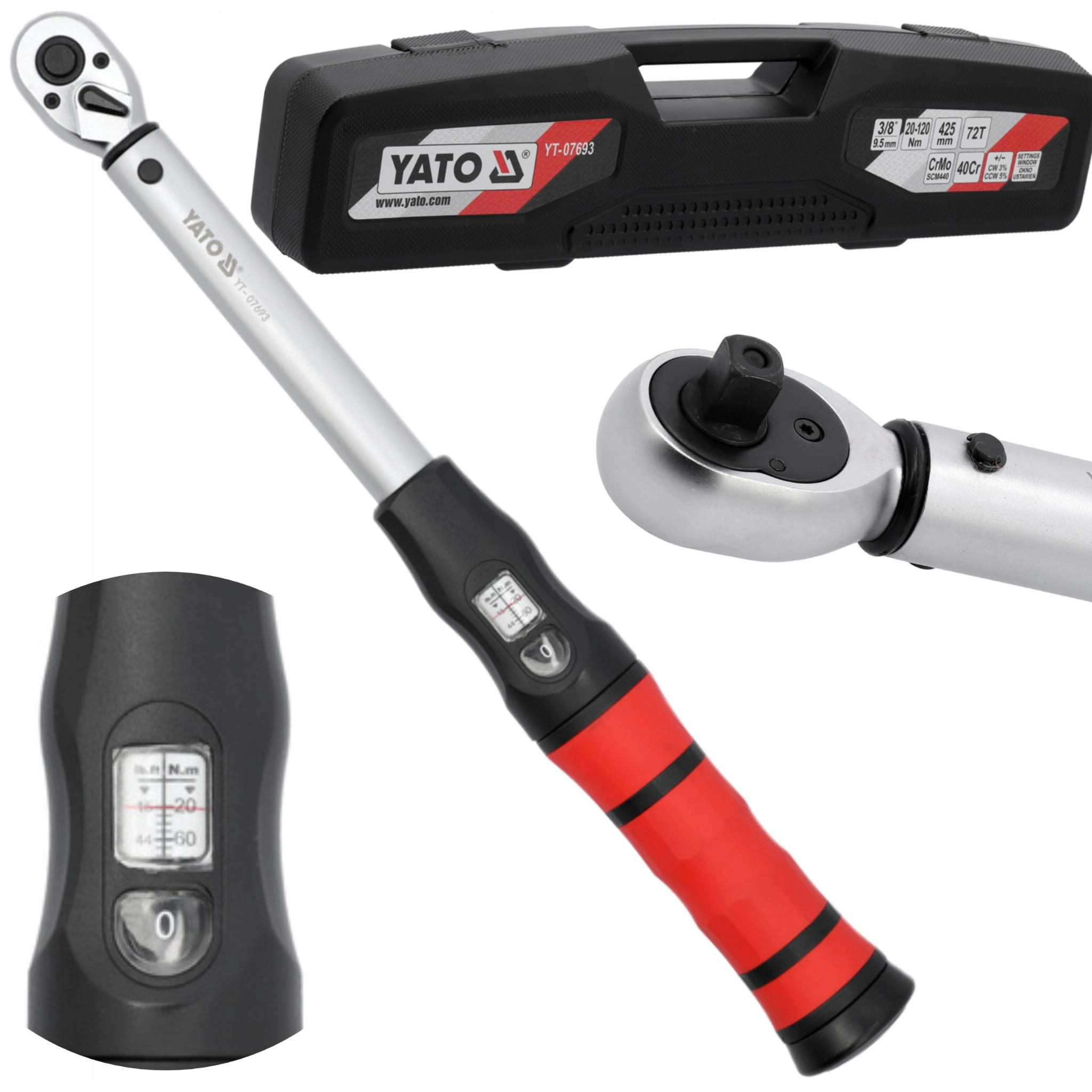 YATO KLUCZ DYNAMOMETRYCZNY 3/8'' Z OKNEM NASTAWCZYM ZAKRES 20-120NM YT-07693