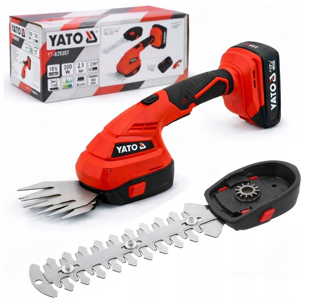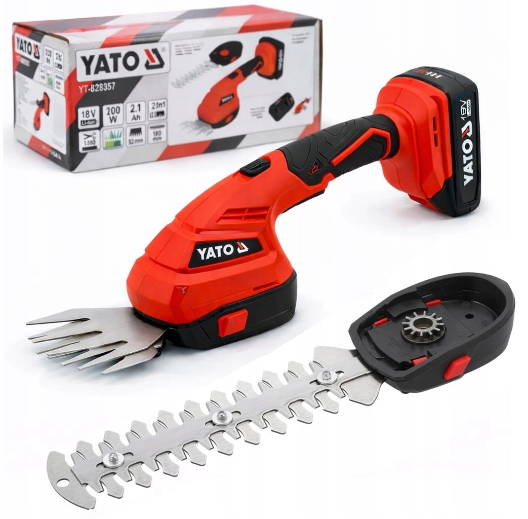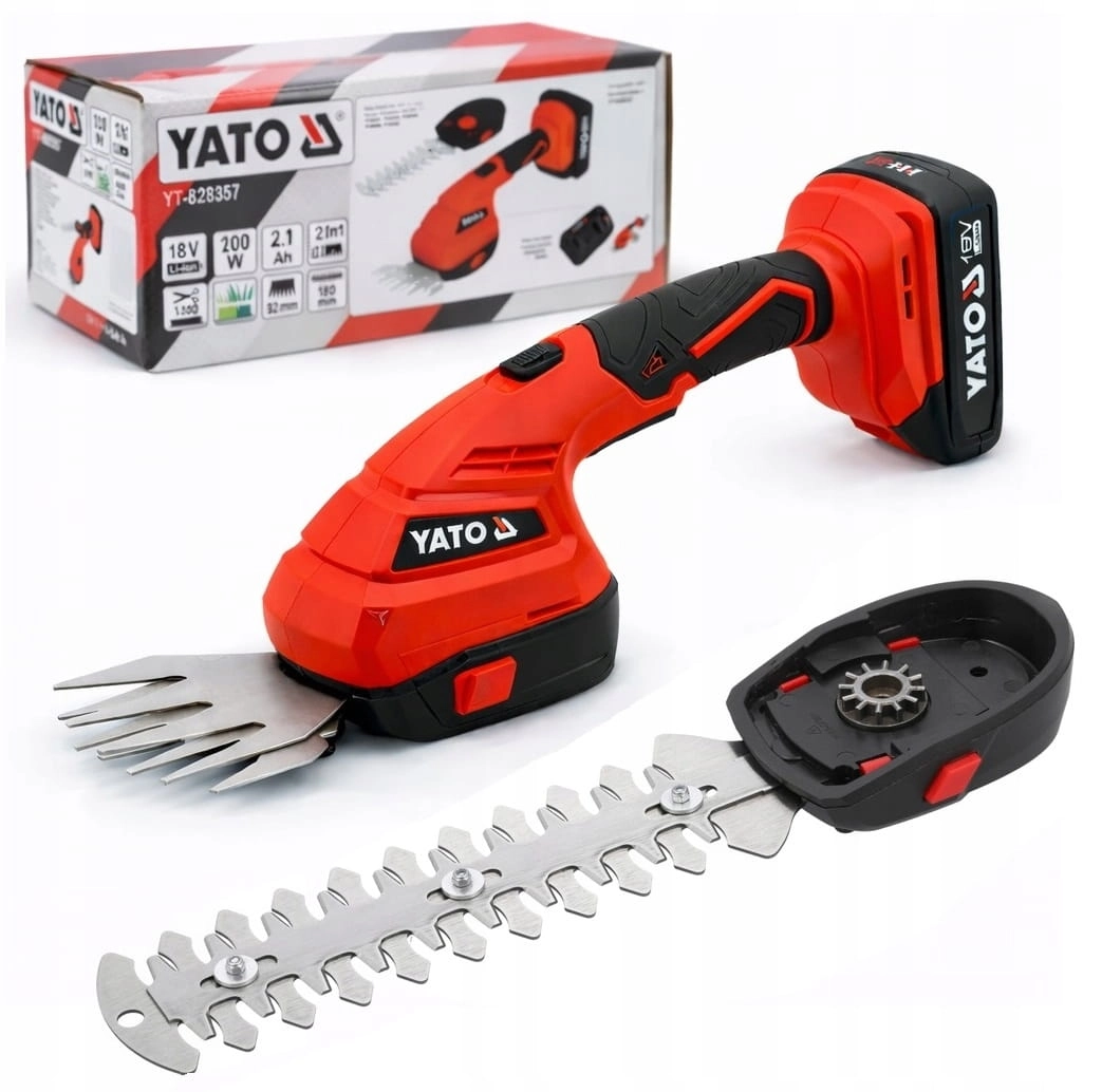 Akumulatorowe nożyce YATO YT-828357 to uniwersalne narzędzie 2 w 1, umożliwiające szybkie i precyzyjne przycinanie trawnika, krzewów i żywopłotów.