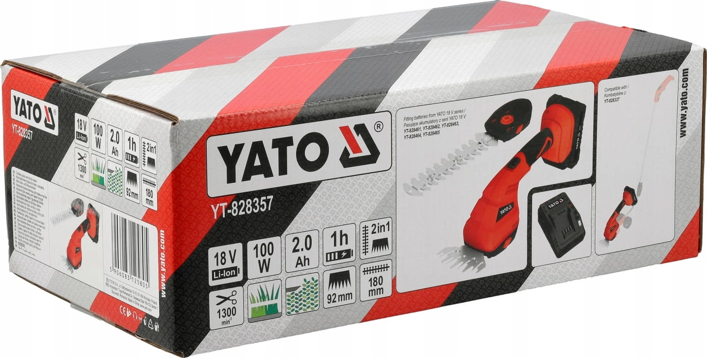 YATO NOŻYCE DO TRAWY I ŻYWOPŁOTU 18V Z BATERIĄ 2AH I ŁADOWARKĄ 2W1 YT828357