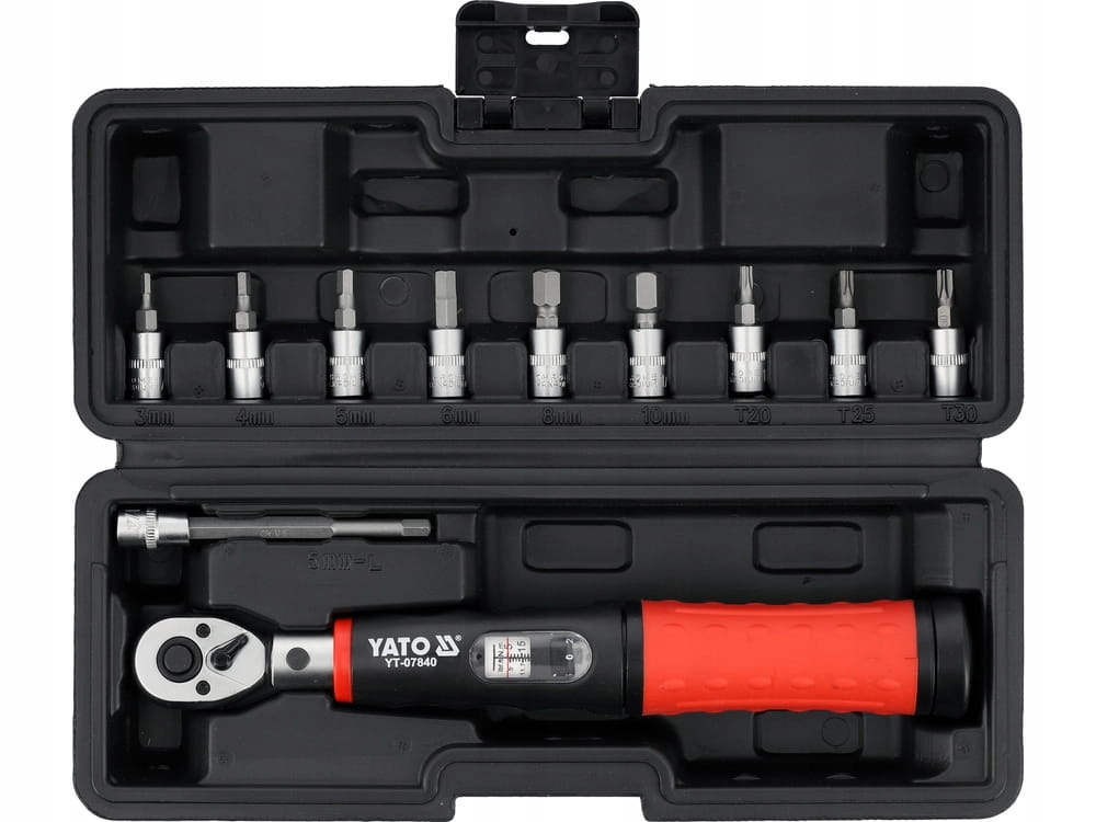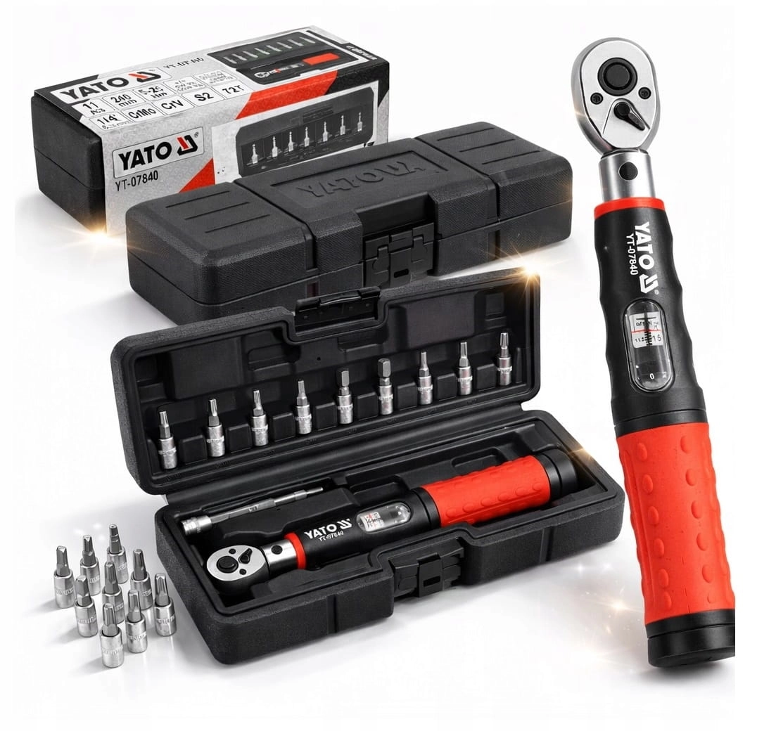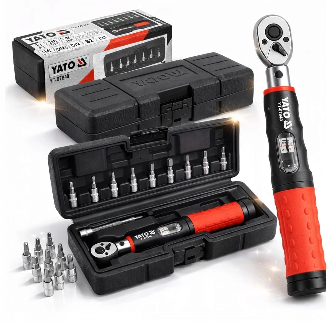 YATO ZESTAW KLUCZ DYNAMOMETRYCZNY 5-25 Nm 1/4'' PRECYZYJNY + BITY PRZEDŁUŻKA