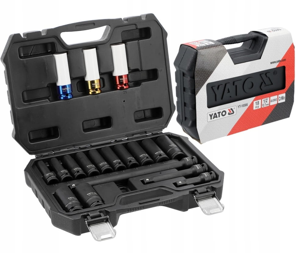 YATO ZESTAW NASADEK UDAROWYCH 1/2" 10-24MM 18EL. DŁUGIE DO KÓŁ YT-10566