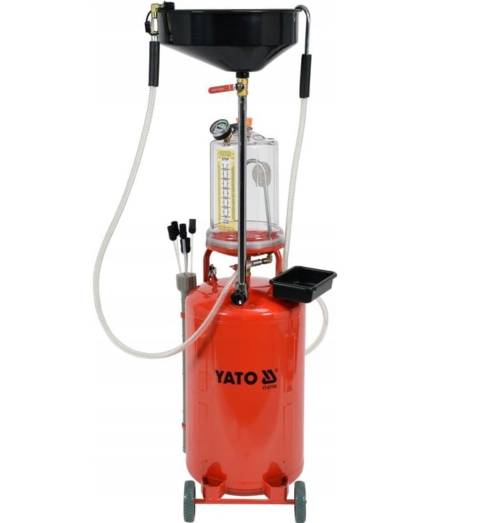 Profesjonalna zlewarko-wysysarka ze zbiornikiem kontrolnym pozwala na szybkie opróżnianie z oleju silników samochodowych i skrzyni biegów. Stosowana do zlewania i wysysania oleju oraz płynów eksploatacyjnych z samochodów, motocykli i maszyn rolniczych.