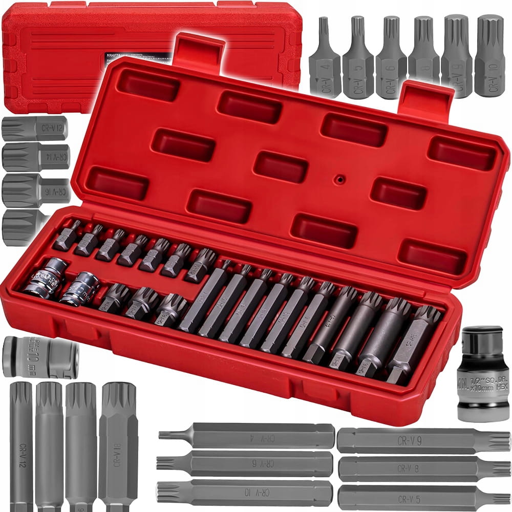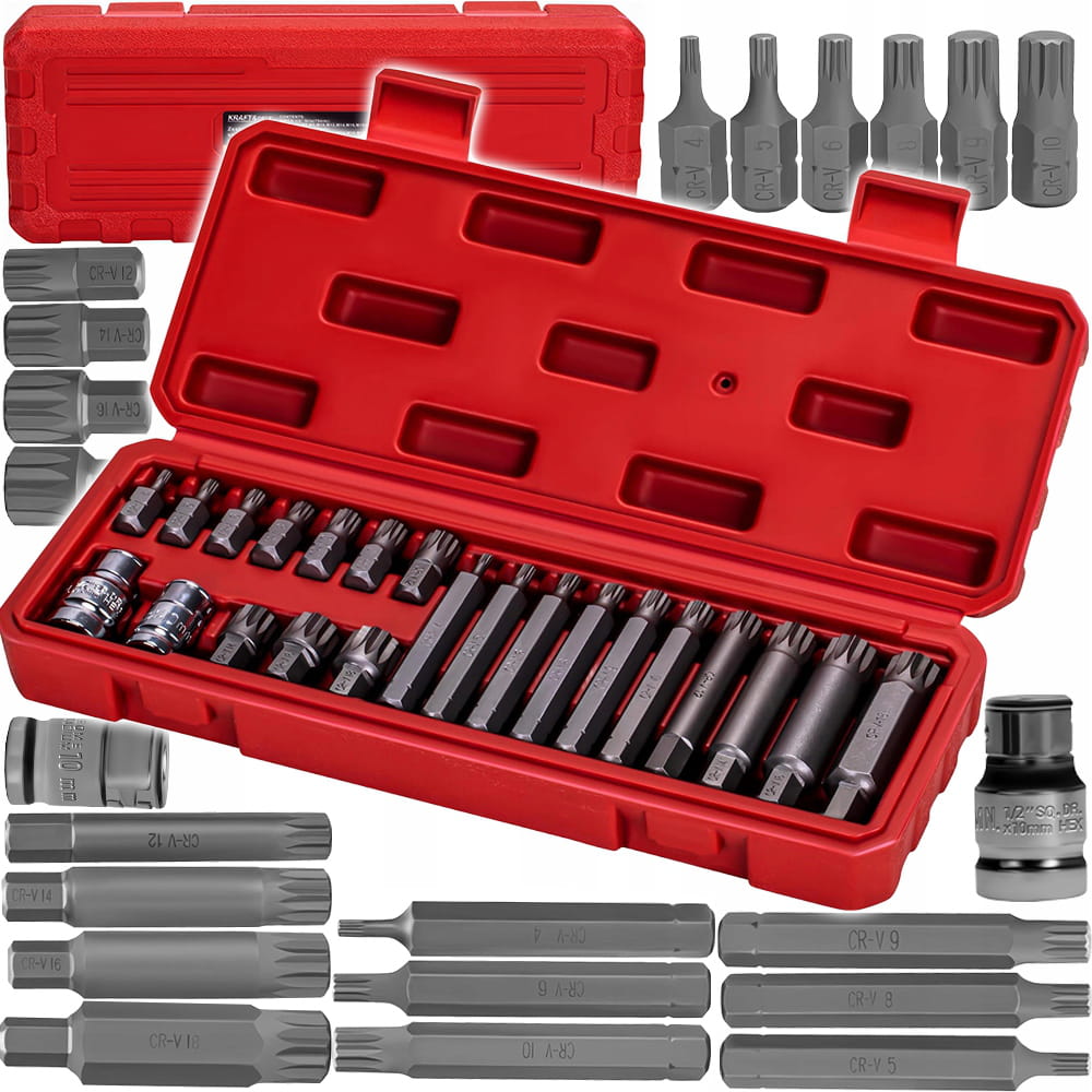 ✔️Zestaw przeznaczony jest do obsługi śrub typu spline, stosowanych m.in. w motoryzacji, mechanice maszyn oraz przemyśle.