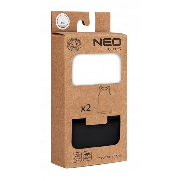 Podkoszulki NEO TOOLS w zestawie 2-pack (biała i czarna) to połączenie wygody, trwałości i klasycznego stylu. Wykonane z wysokiej jakości dzianiny single jersey o składzie 95% bawełny i 5% elastanu, zapewniają doskonałe dopasowanie i komfort noszenia. Gramatura 180 g/m² sprawia, że podkoszulki NEO TOOLS są wytrzymałe, a jednocześnie przyjemne w dotyku. Okrągły dekolt oraz wykończenie pach i dekoltu lamówką podkreślają estetykę wykonania.