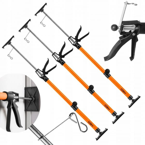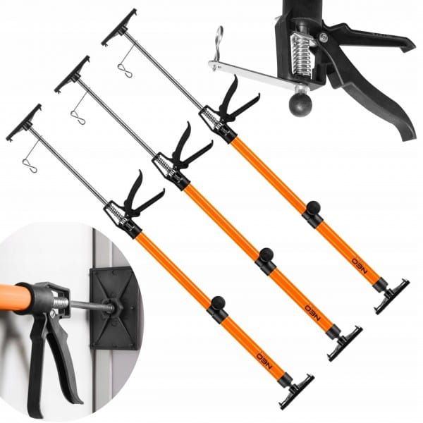 Podpora teleskopowa 50-115 cm 35-433 marki NEO to narzędzie przydatne do wspierania elementów budowlanych i konstrukcyjnych z maksymalnym obciążeniem 45 kg. Umożliwia wygodne mocowanie płyt gipsowo-kartonowych, służy także m.in. do rozpierania montowanych futryn. Podpora posiada regulowany zakres wysokości (od 50 do 115 cm). Została wyposażona w gumowe, antypoślizgowe stopki dla lepszej stabilizacji podparcia. Wygodna w użyciu, zaprojektowana z myślą o szybkim rozsuwaniu oraz z możliwością blokady dla zwiększonego bezpieczeństwa. Wytwarzana z trwałych materiałów, będzie narzędziem na wiele lat.