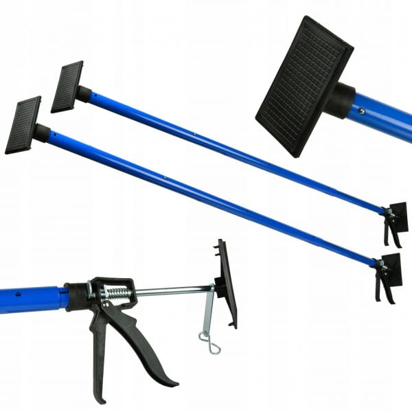 Solidna podpora teleskopowa marki GEKO. Urządzenie tego typu doskonale sprawdza się podczas montażu płyt sufitowych/ściennych pod niewygodnym kątem lub przy naprawianiu powierzchni klejonych.