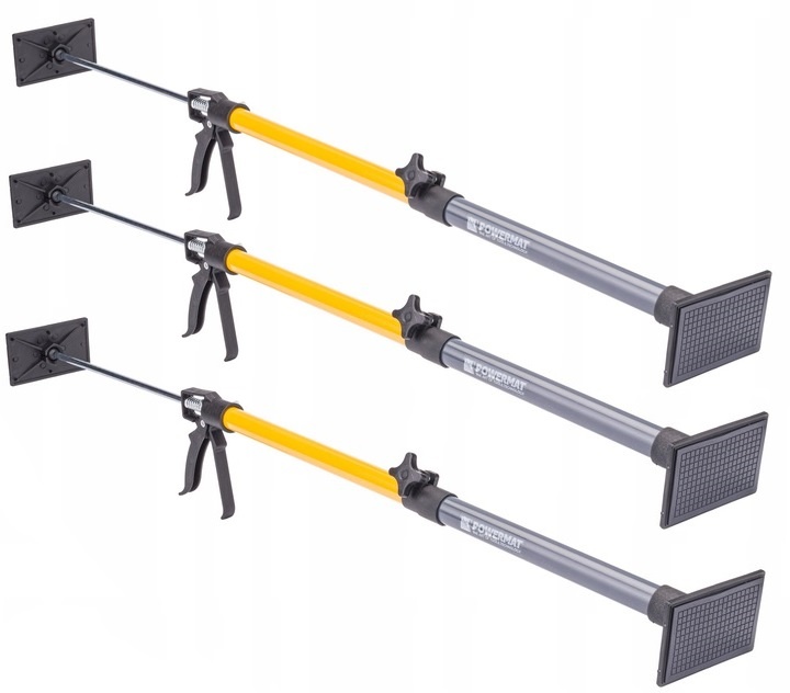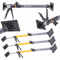 Podpora znajdzie swoje zastosowanie podczas montażu płyt sufitowych / ściennych (kartonowo-gipsowych) pod niewygodnym kątem lub przy naprawianiu powierzchni klejonych. Funkcja teleskopowa umożliwia regulację wysokości, a uchylne płyty dociskowe zapewniają stabilne zamocowanie.