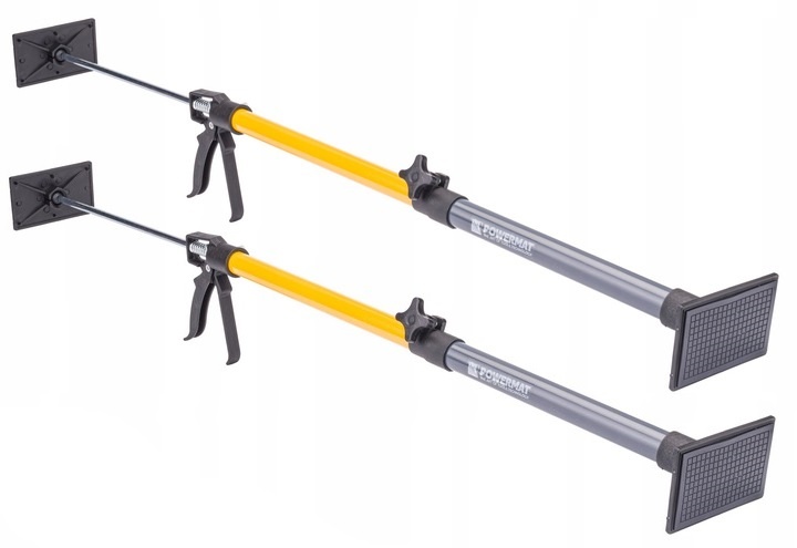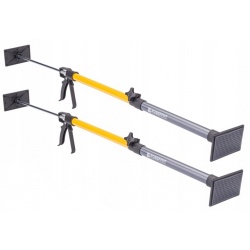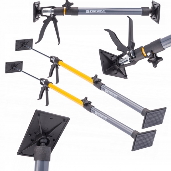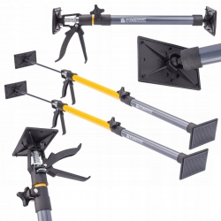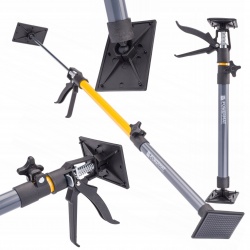 Podpora znajdzie swoje zastosowanie podczas montażu płyt sufitowych / ściennych (kartonowo-gipsowych) pod niewygodnym kątem lub przy naprawianiu powierzchni klejonych. Funkcja teleskopowa umożliwia regulację wysokości, a uchylne płyty dociskowe zapewniają stabilne zamocowanie.