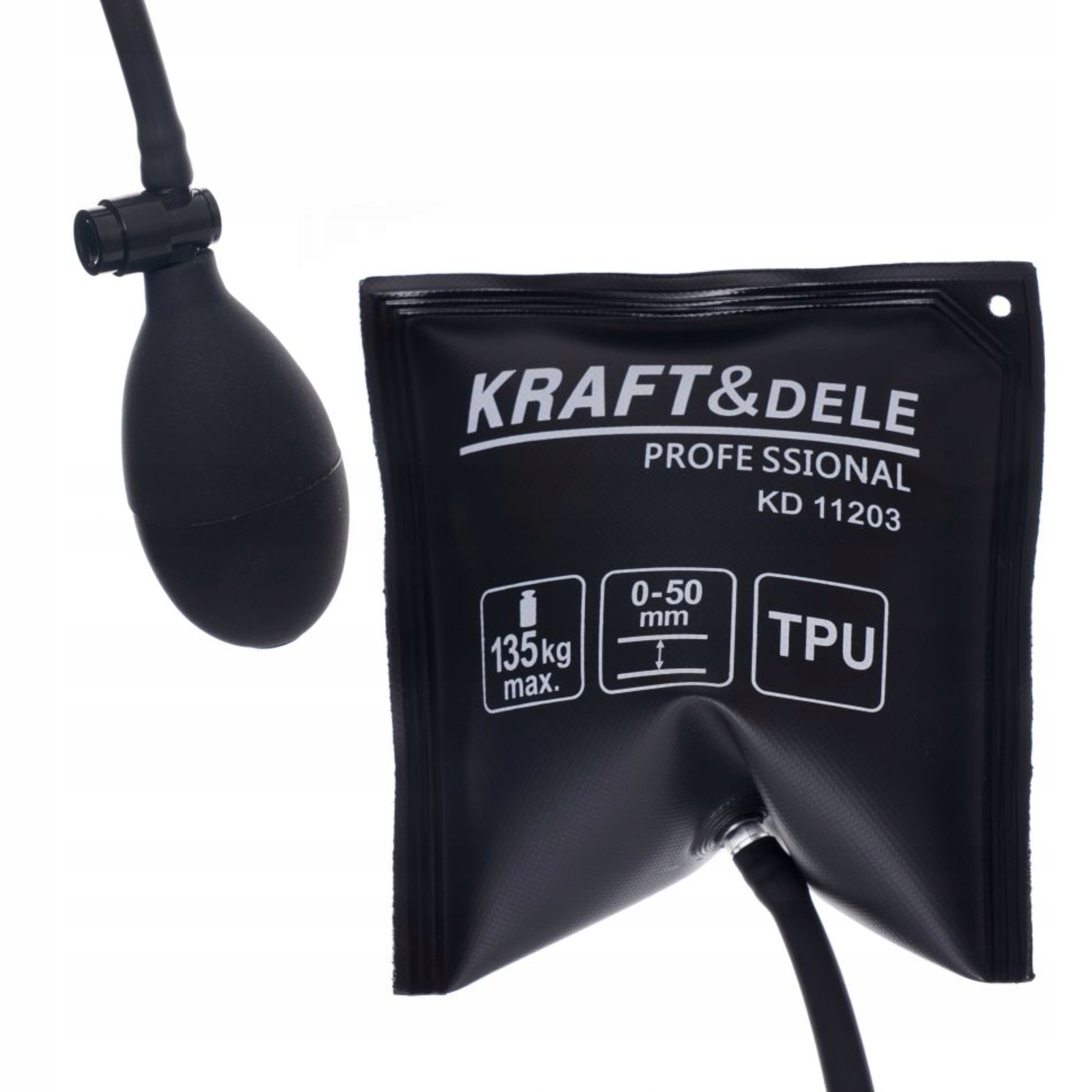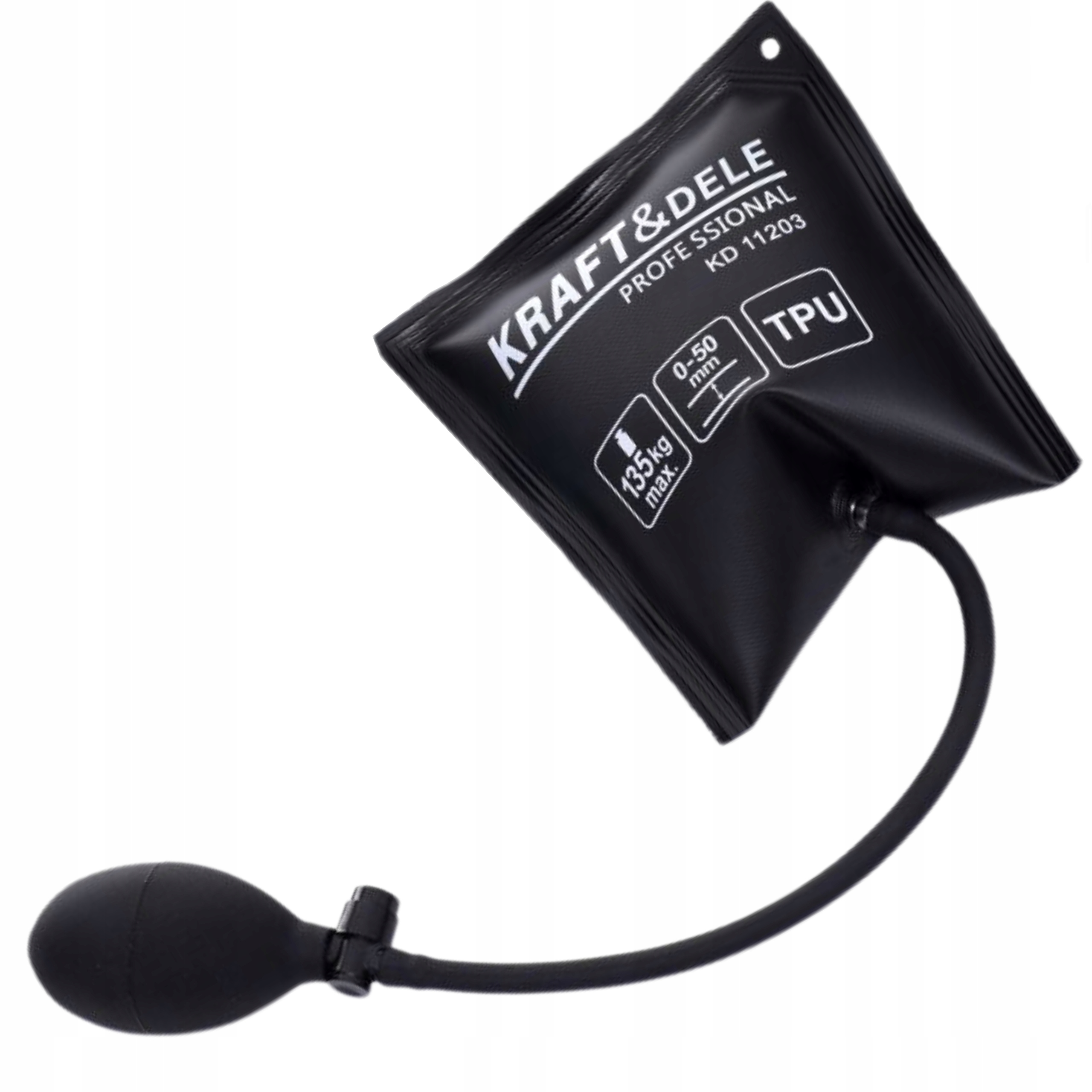 Poduszka polskiej marki Kraft&Dele o oznaczeniu KD11203 pozwala unosić meble oraz inne ciężkie przedmioty, nawet do 135kg! Poduszka jest przydatna także przy poziomowaniu mebli, ciężkich urządzeń typu lodówka, pralka, jak również przy osadzaniu okien i drzwi. Poduszki używane są również w warsztatach do awaryjnego otwierania drzwi samochodowych.