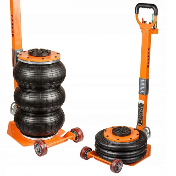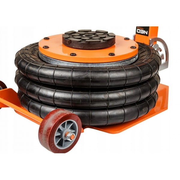 Podnośnik pneumatyczny 3 T, wys. 145 – 420 mm 11-737 marki NEO TOOLS to podnośnik oferujący maksymalny udźwig na poziomie 3 ton. Charakteryzuje się zakresem wysokości od 145 do 420 mm. Średnica jego miecha wynosi 270 mm, a oferowane ciśnienie to od 6 do 12 bar. Podnośnik wyposażony jest w komplet dwóch kółek, wpływających na komfort jego przemieszczania. Podnośnik pneumatyczny NEO TOOLS posiada stalową, trwałą konstrukcję i gumowy miech. Będzie nieoceniony podczas podnoszenia samochodów w celu wymiany koła. Dzięki płaskiej budowie mieści się pod progiem nawet w niskich pojazdach. Wyposażony w ruchomy uchwyt, osłonę zaworów, a także przydatną funkcję ustawienia uchwytu w pionie podczas pracy. Podnośnik pneumatyczny NEO TOOLS przyda się w każdym warsztacie lub serwisie motoryzacyjnym.