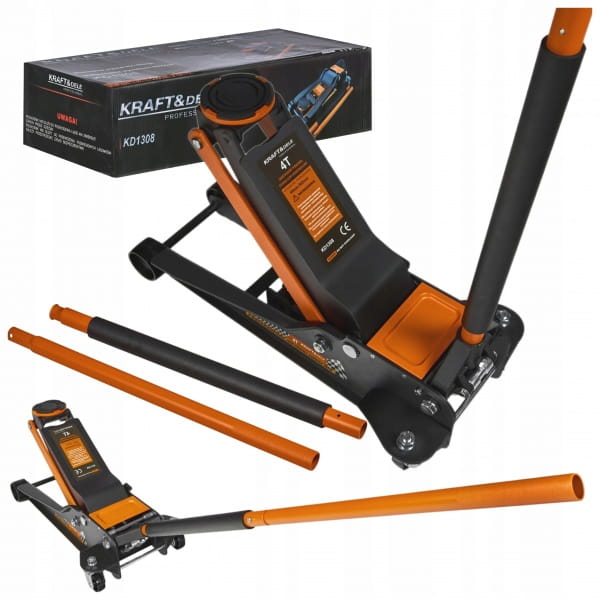 Podnośnik samochodowy 4T KD1308 marki Kraft&Dele przeznaczony jest do wznoszenia aut na wysokość od 95mm do 552mm, wykonany z solidnych materiałów zapewniających długotrwałą żywotność i wytrzymałość.