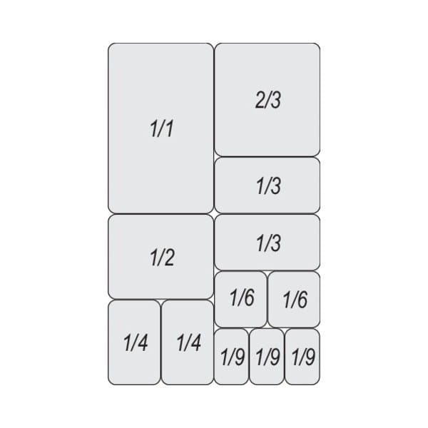 Wymiary pojemników zgodne są z normą GASTRO NORM PN-EN 631-1:1996, co oznacza, że ich wymiary są dokładnie określone: