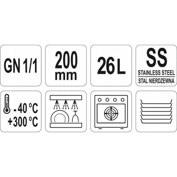 POJEMNIK GASTRONOMICZNY STAL NIERDZEWNA GN 1/1 200MM 26L YATO YG-00255
