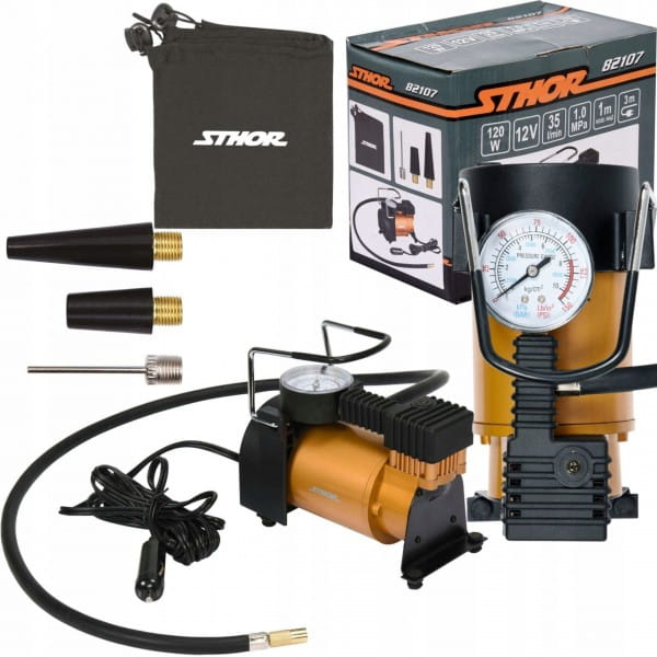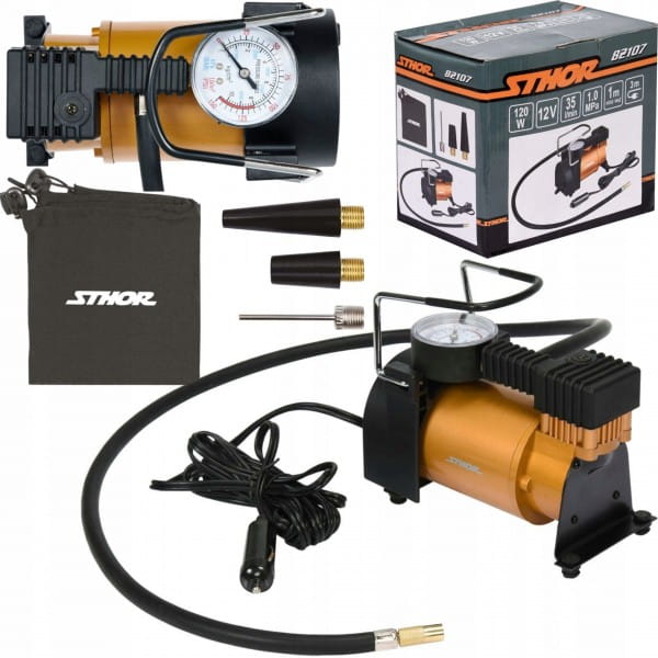 KOMPRESOR SAMOCHODOWY 12V POMPKA 120W + 3 KOŃCÓWKI STHOR 82107