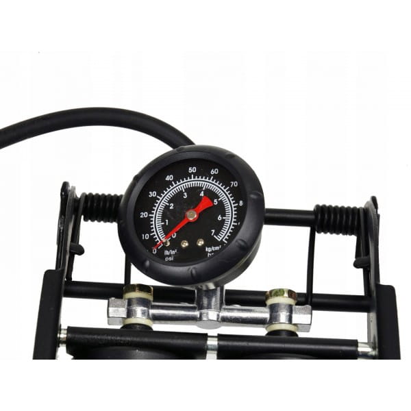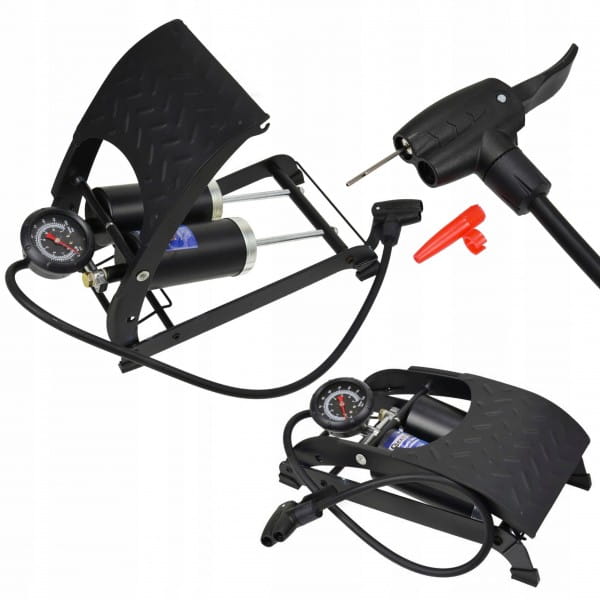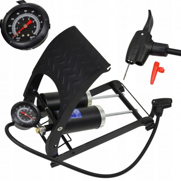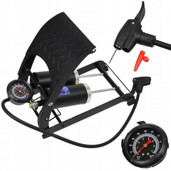 Uniwersalna pompka nożna, duża wydajność dzięki zastosowaniu dwóch tłoków. Niezastąpiona w samochodzie jak i w każdym gospodarstwie domowym.
