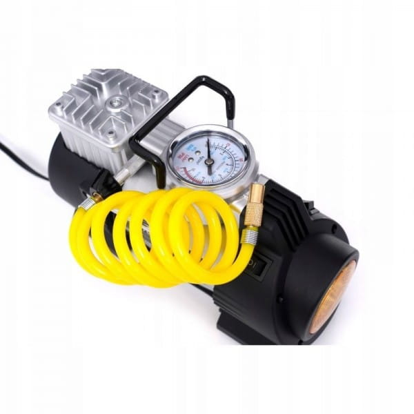 Przenośny kompresor samochodowy / sprężarka powietrza 12V/ 15A marki Kraft&Dele model KD1468 zasilany z gniazda zapalniczki. Szeroki zakres zastosowań, dzięki 3 złączkom napompujemy nim koła, piłki, baseny, materace itp.