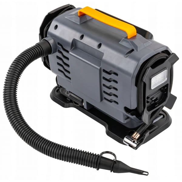Kompresor wyposażono w przewód 230 V, przewód 12 V, wzmocniony wąż powietrzny oraz dodatkowy wąż do dmuchawy, a także zestaw adapterów i zapasowy bezpiecznik.