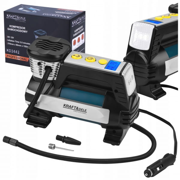 KRAFT&DELE KOMPRESOR SAMOCHODOWY 12V + LATARKA LED 35 l/min 6,9 bar KD3442