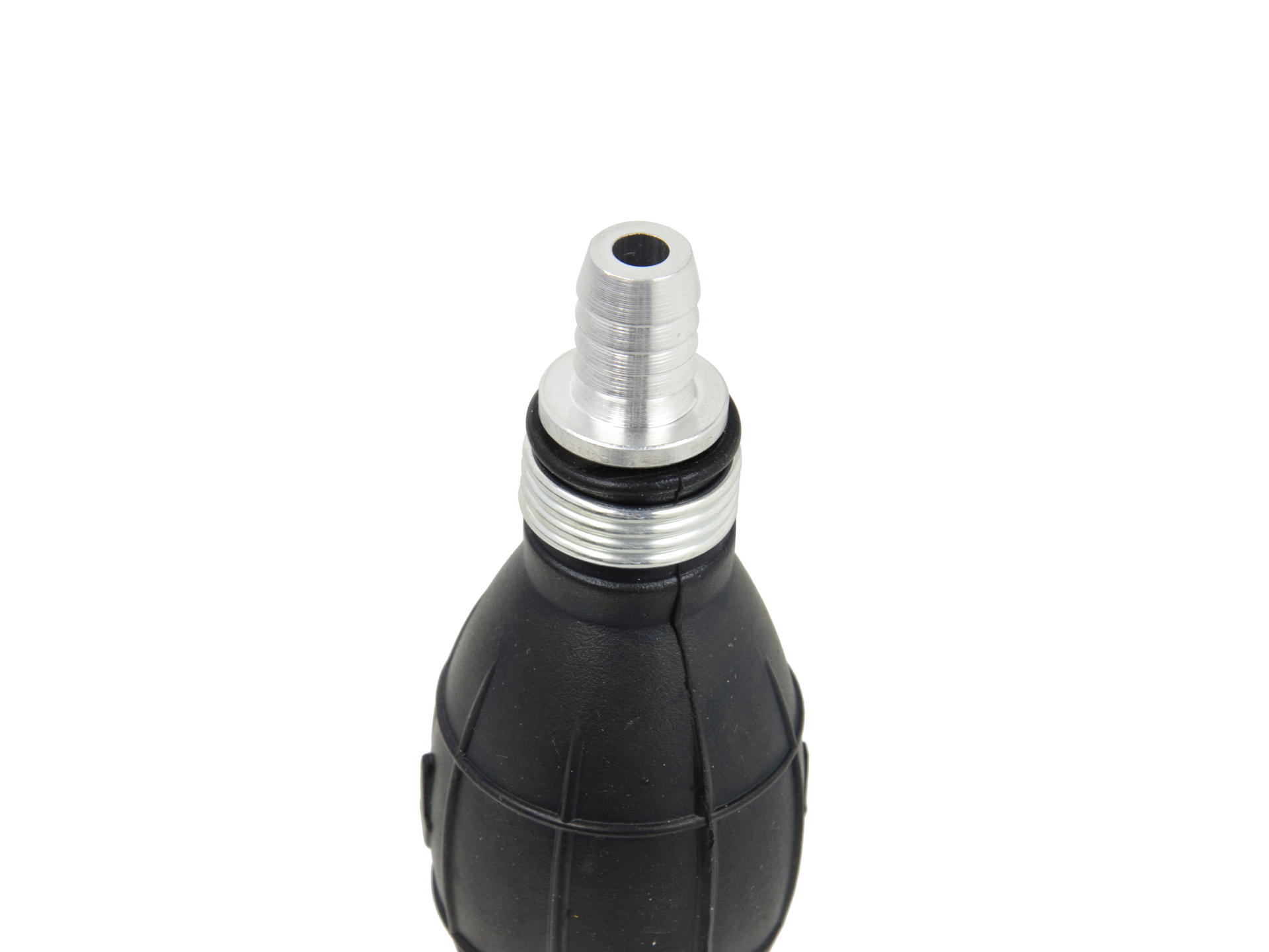 Posiada zaworek zwrotny zapobiegający cofaniu się paliwa.