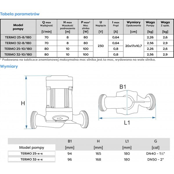 TERMO 25-10/180 POMPA C.O. B.ŚRUBUNKU