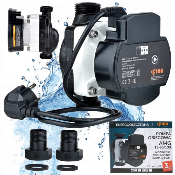 IBO POMPA OBIEGOWA ELEKTRONICZNA AMG 15-60/130 PWM ENERGOOSZCZĘDNA ŚRUBUNKI