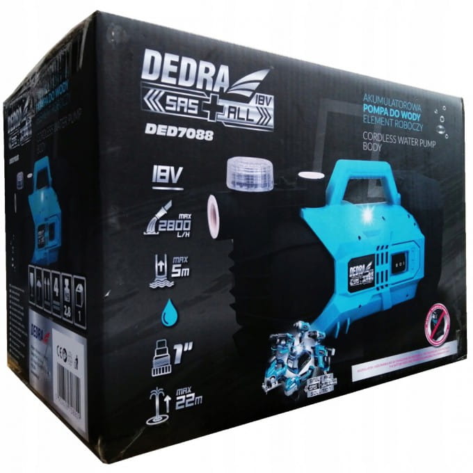 Dane techniczne akumulatorowej pompy do wody 18V, DEDRA SAS+ALL DED7088: