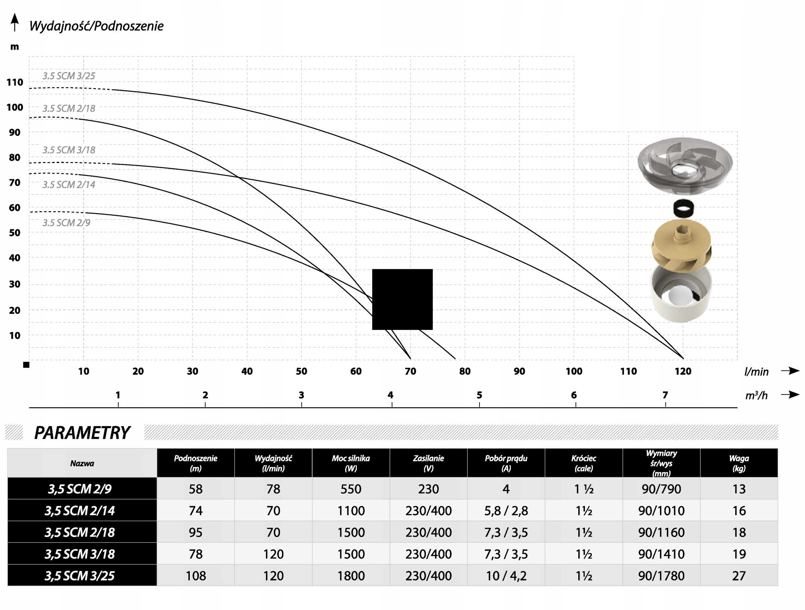 POMPA GŁĘBINOWA 3,5'' SCM2/9 230V 18m kabel 0,55KW