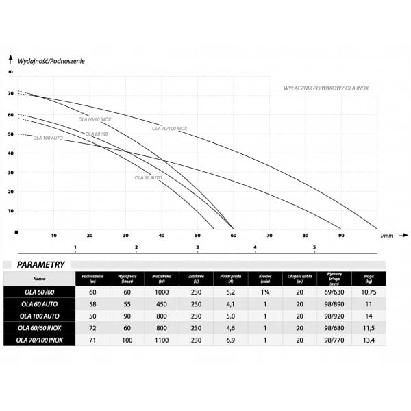 - Pompa głębinowa OLA 60 AUTO marki IBO to wielostopniowa, wysokiej jakości pompa z silnikiem jednofazowym o mocy 0,45 kW.