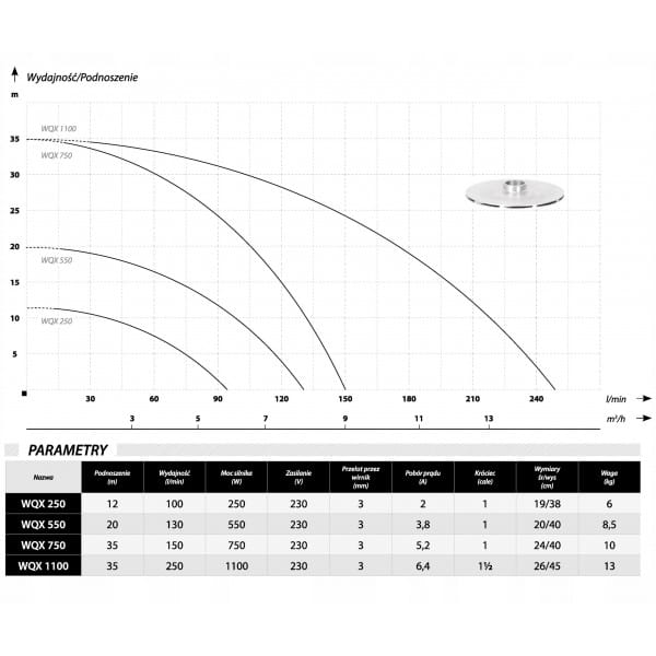 WQX 250 POMPA ZATAPIALNA PŁYWAK SZAMBA WODY