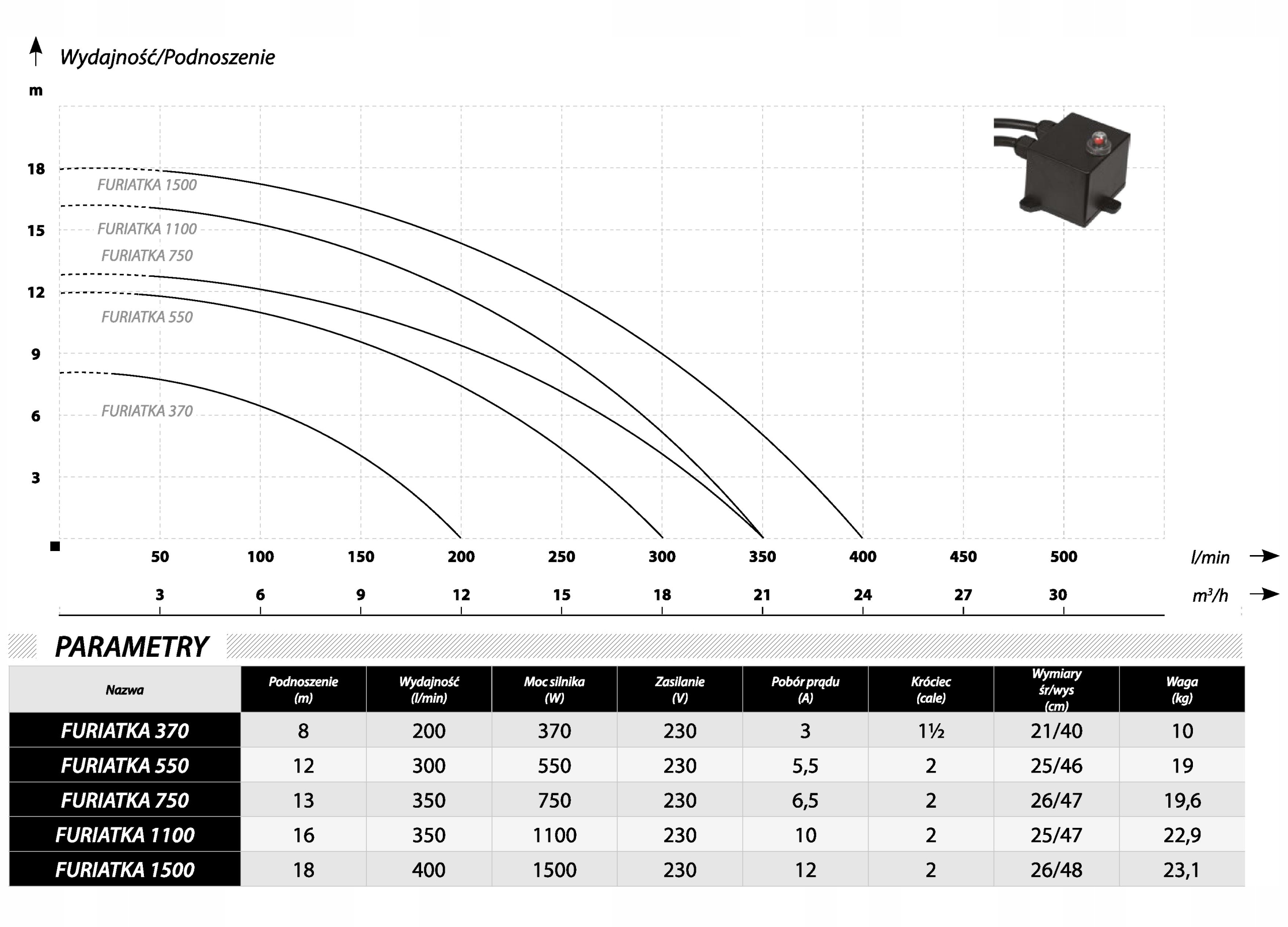 Pompa ta należy do serii solidnych, żeliwnych pomp zatapialnych, przeznaczonych do pompowania ścieków domowych, a także do odwadniania zalanych pomieszczeń. Wyposażona jest w skuteczny i wytrzymały śrubowy rozdrabniacz, o konstrukcji, która niemalże uniemożliwia zablokowanie. Niezawodny silnik IBO, zabezpieczony jest przed przeciążeniem poprzez system zamontowany na kablu, który automatycznie wyłączy pompę w przypadku ryzyka przeciążenia. Żeliwo, z którego wykonana została pompa, jest bardzo odporne na wszelkiego rodzaju uszkodzenia mechaniczne, a także na działanie czynników chemicznych, z jakim pompa kontaktuje się pracując w ściekach. Solidna i trwała konstrukcja, wydajność oraz korzystna cena sprawiają, że pompy z serii Furiatka są jednymi z najpopularniejszych urządzeń tego typu na polskim rynku.
