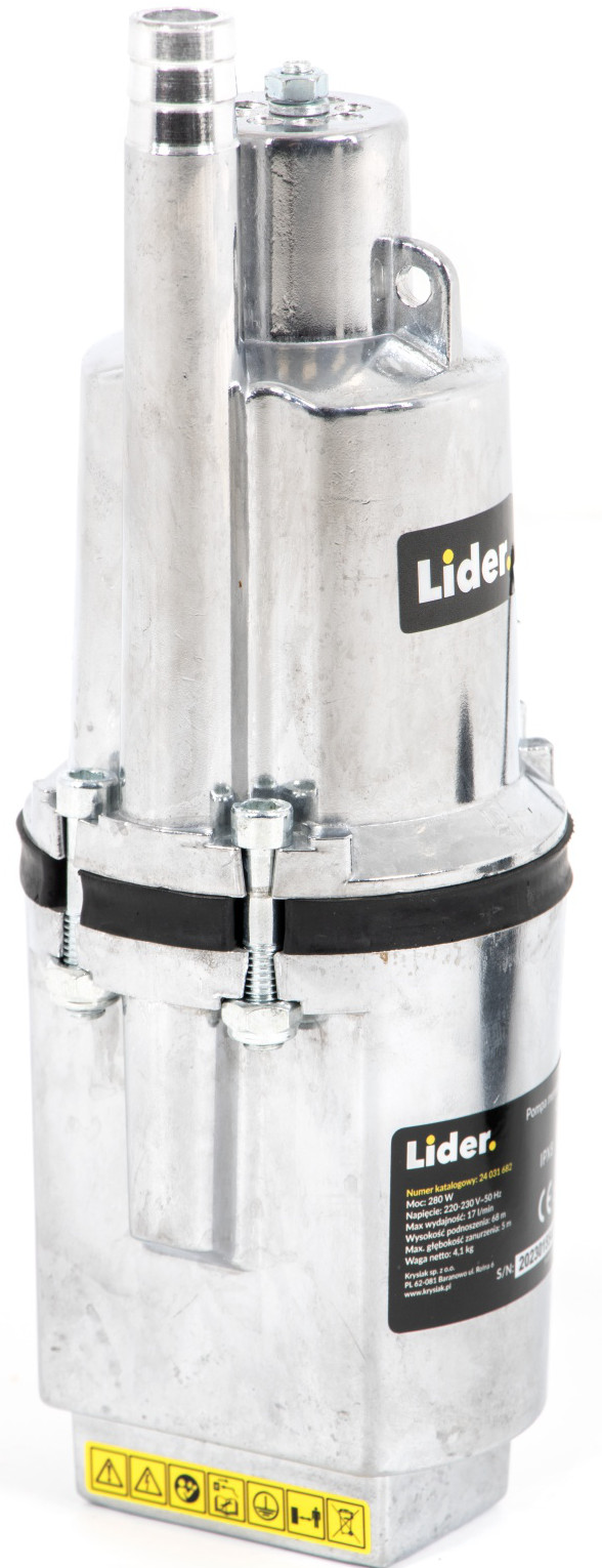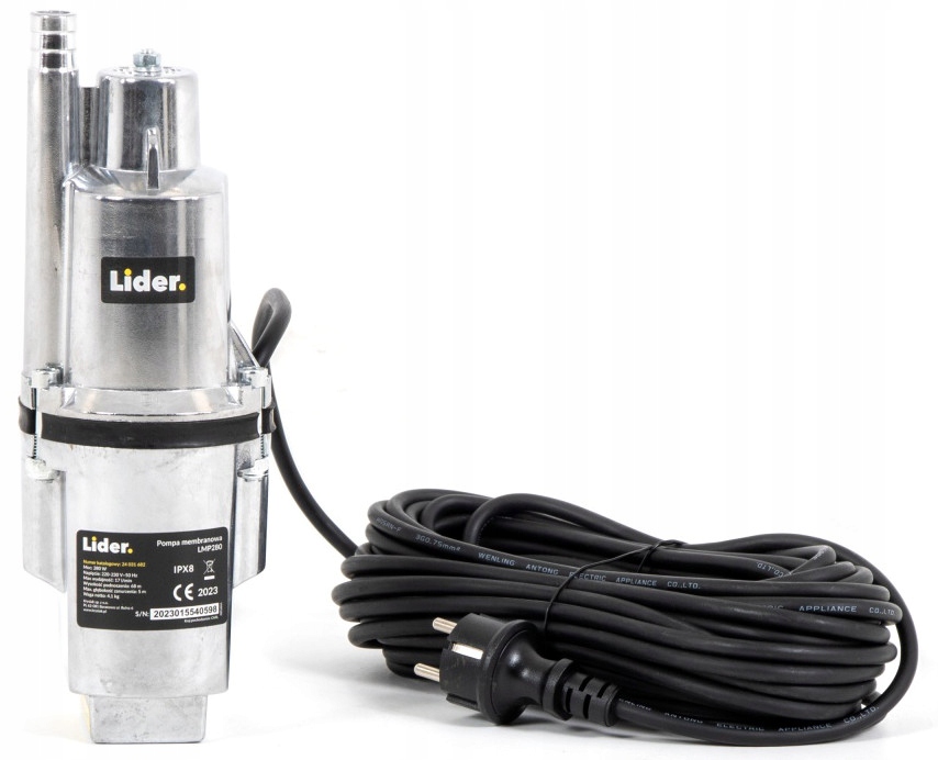 Pompa elektryczna Lider LMP280 to pompa membranowa przeznaczona do pracy z wodą czystą. Maksymalna głębokość jej zanurzenia może wynosić 5 metrów. Nie jest to urządzenie przeznaczone do pracy ciągłej – po 2 godzinach należy zrobić minimum 20 minut przerwy, a łączny dobowy czas pracy pompy nie powinien przekraczać 12 godzin. Maksymalna wysokość podnoszenia wody przy użyciu pompy wynosi 68 m. W wodzie nie powinny znajdować się ciała obce o wymiarze większym niż 0,5 cm.