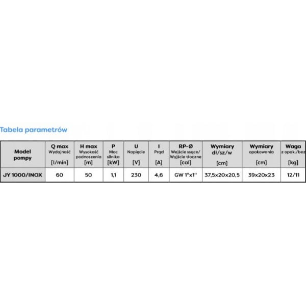 Pompa hydroforowa JY 1000 przeznaczona jest do zaopatrywania w słodką, zimną czystą wodę pod ciśnieniem. Pompa hydroforowa JY 1000 służy do dostarczania wody z ujęć studziennych lub innych źródeł zarówno do budynków mieszkalnych, jak i obiektów gospodarczych, działkowych. Znakomicie spełni swoją rolę przy nawadnianiu. Oferowana w dwóch wersjach wykonania.